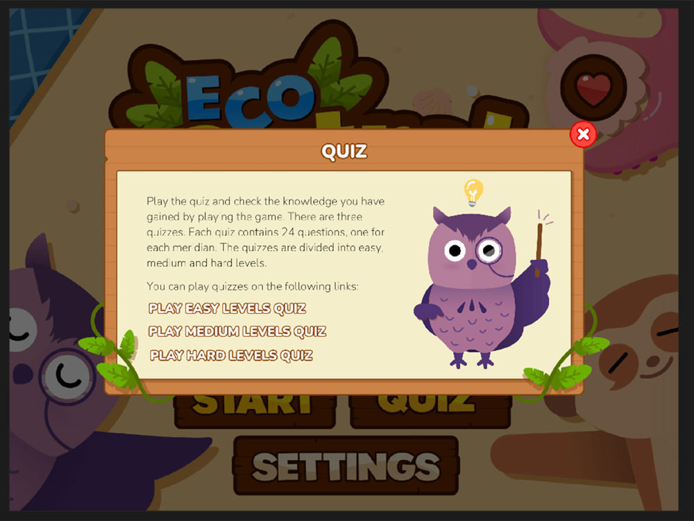 This mobile game was developed as part of the Eco Patrol for Environmental Objectives (E4E) project, which aims to raise awareness of topics related to the environment and climate change. The goal of the game is to digitize the area of environmental education by teaching young people about preserving the planet in a fun and interactive way.