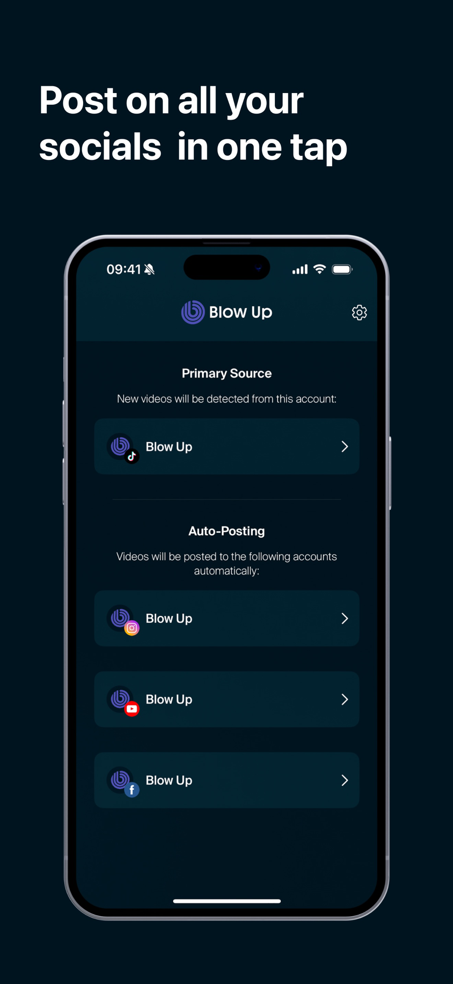 Say goodbye to manual uploads and hello to seamless growth. Start reaching more people and growing your audience today with Blow Up!