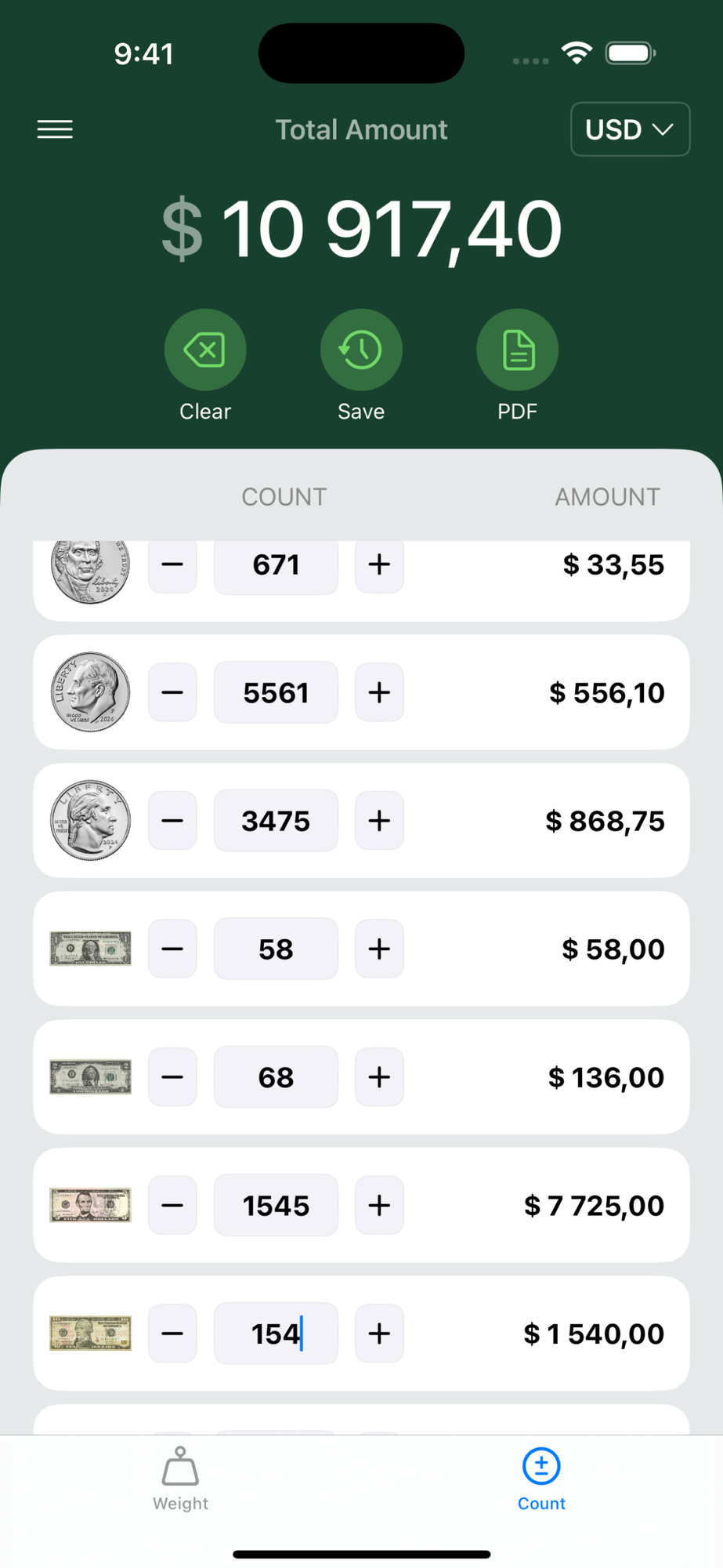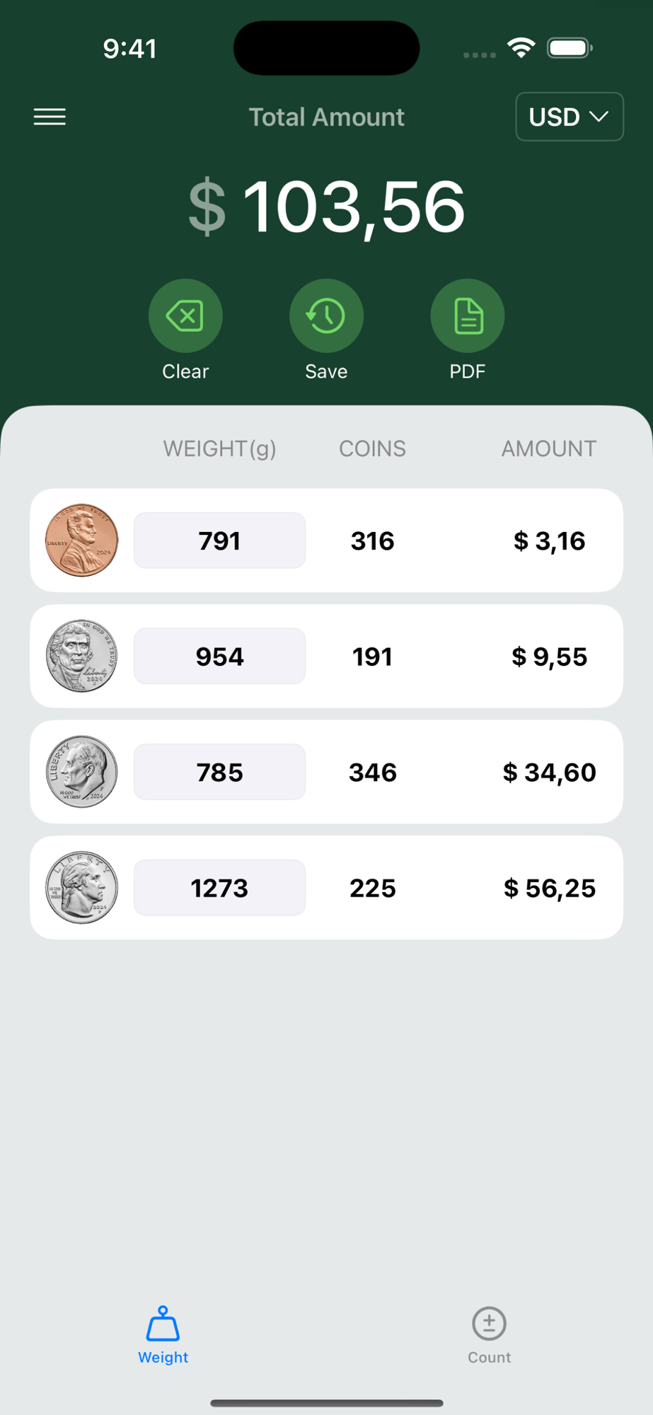 Coin Counter is the ultimate cash counting app that helps you quickly and accurately count coins by weight. Whether you're a business owner, cashier, or just someone who frequently deals with cash, this app makes counting money effortless.
