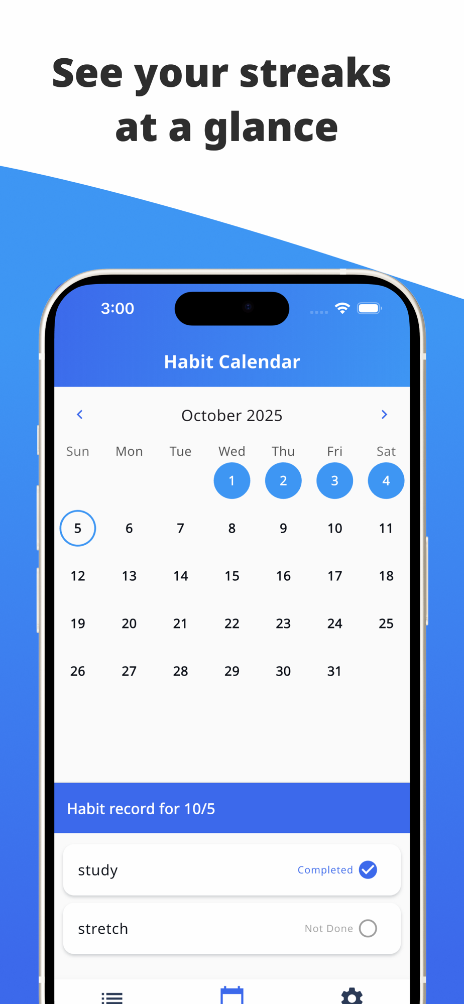 - View your habit completion at a glance on the calendar