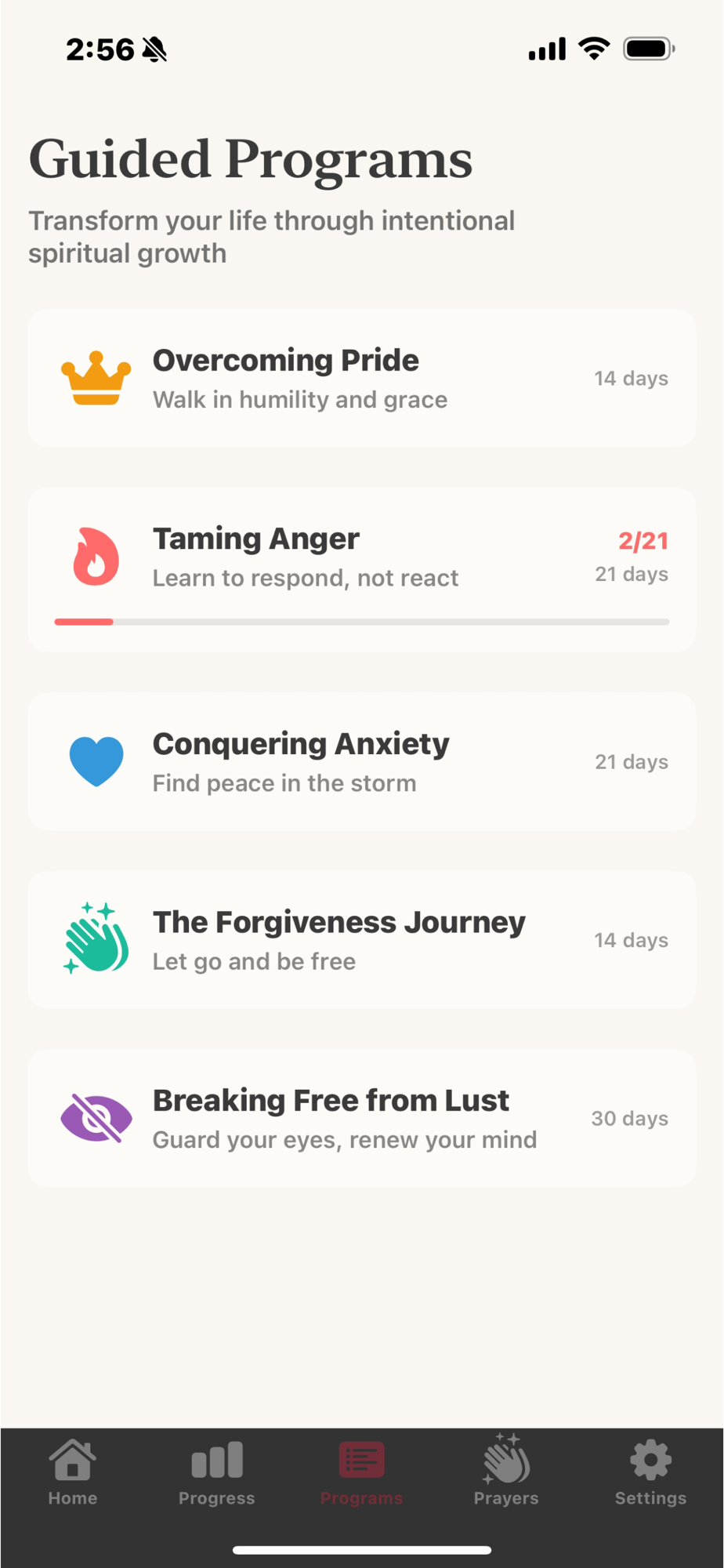Upgrade to unlock unlimited daily confessions, access to all guided programs, and advanced progress tracking.