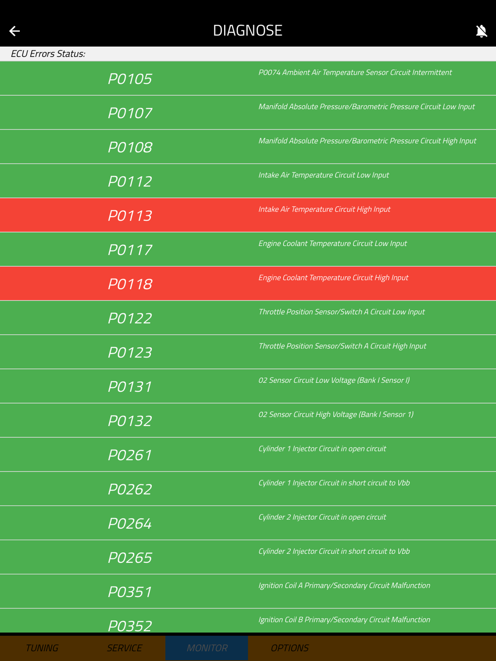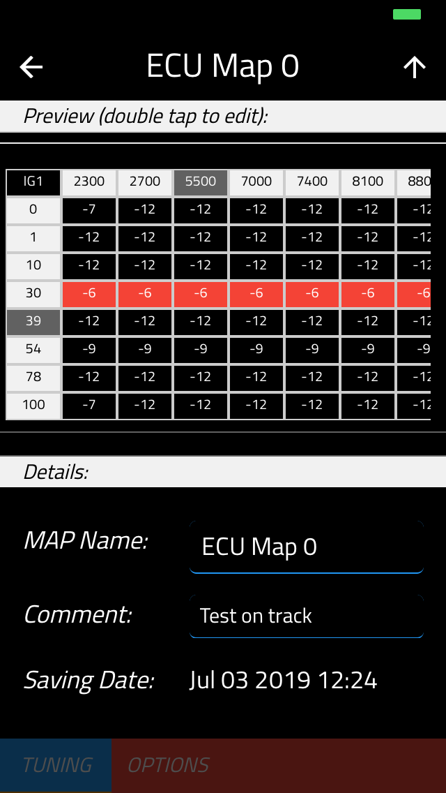 App appearance and functionalities varies depending on the connected device and ECU. Images shown may refer to: WiFiCOM on GET ECUs; WiFiCOM on Honda CRF stock ECUs; MX-TUNER 2.0 on Suzuki RM-Z stock ECUs.