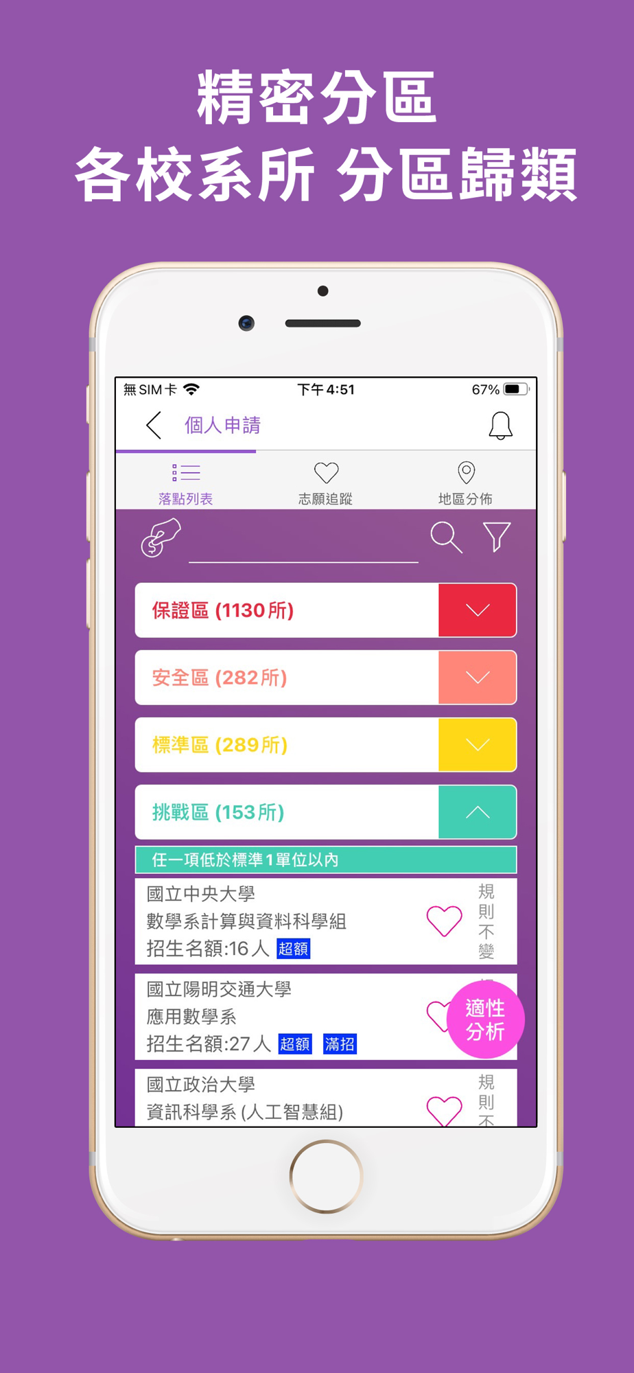 - 志願追蹤頁的科系排序可以任意移動順序