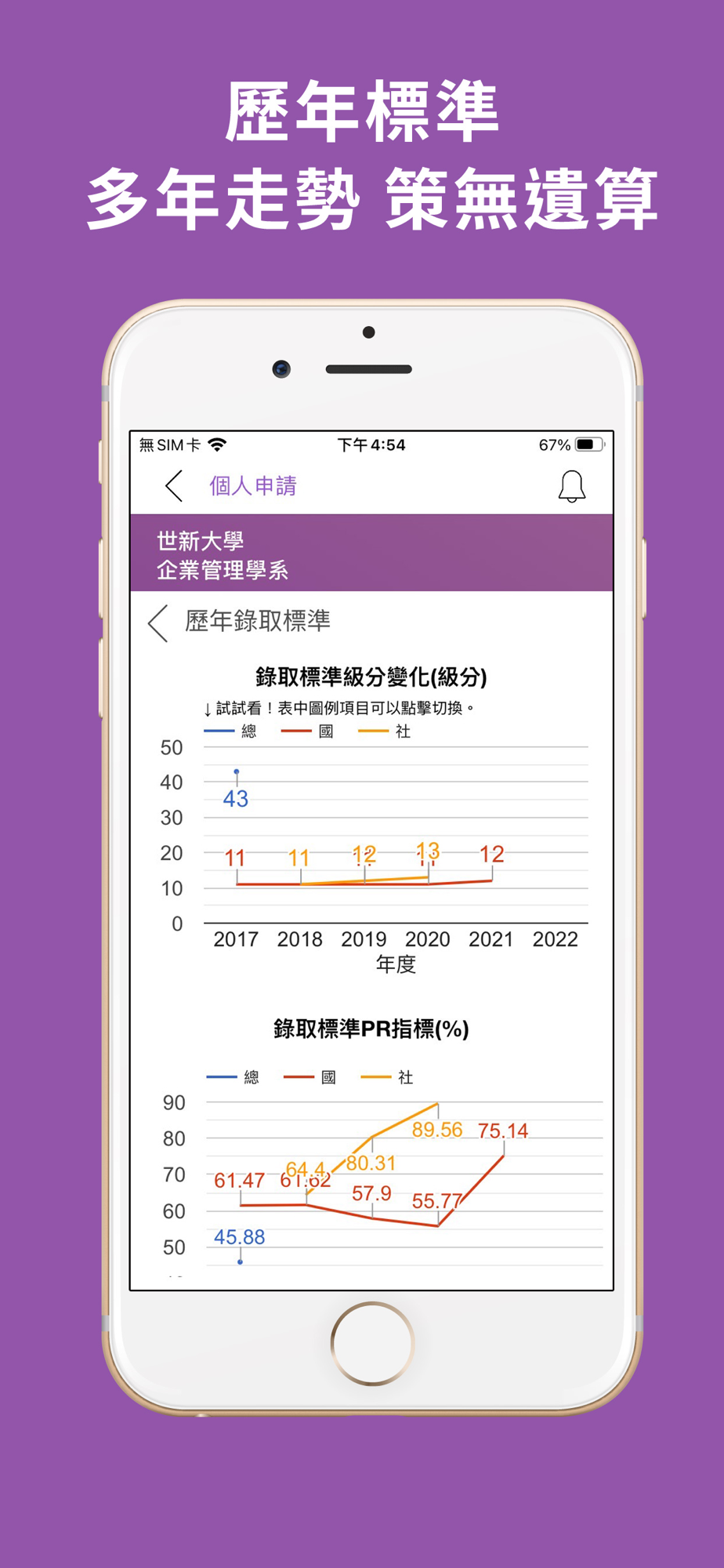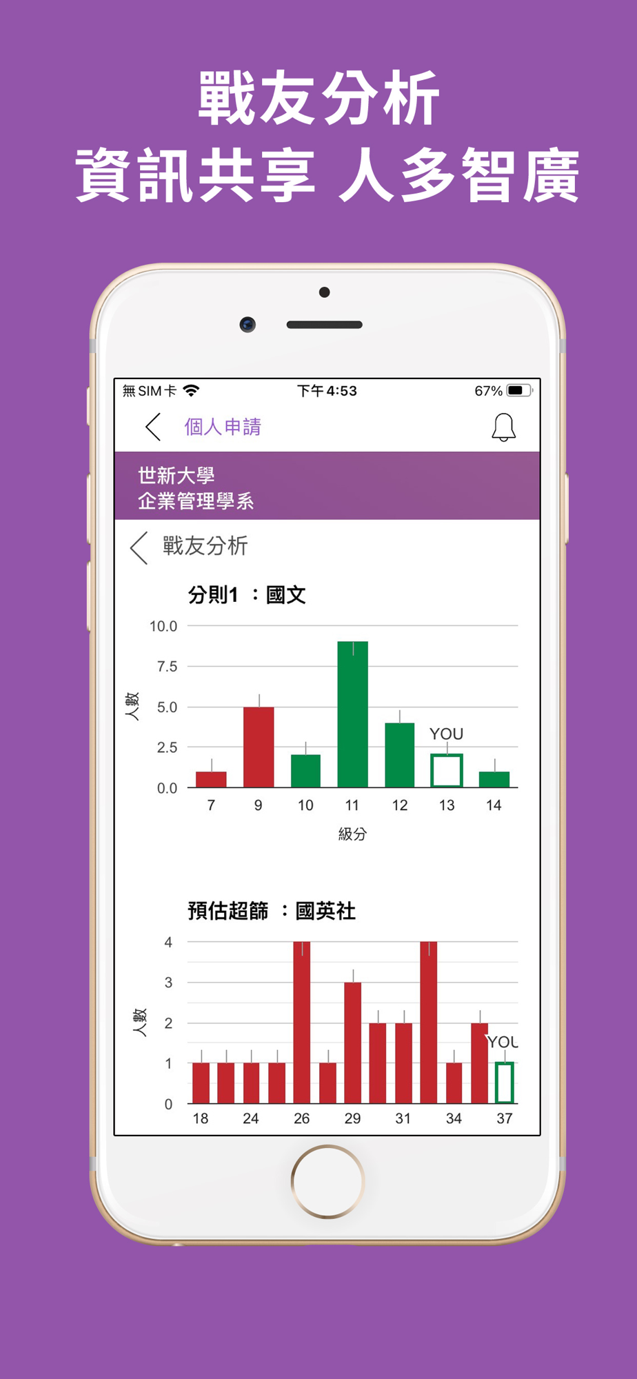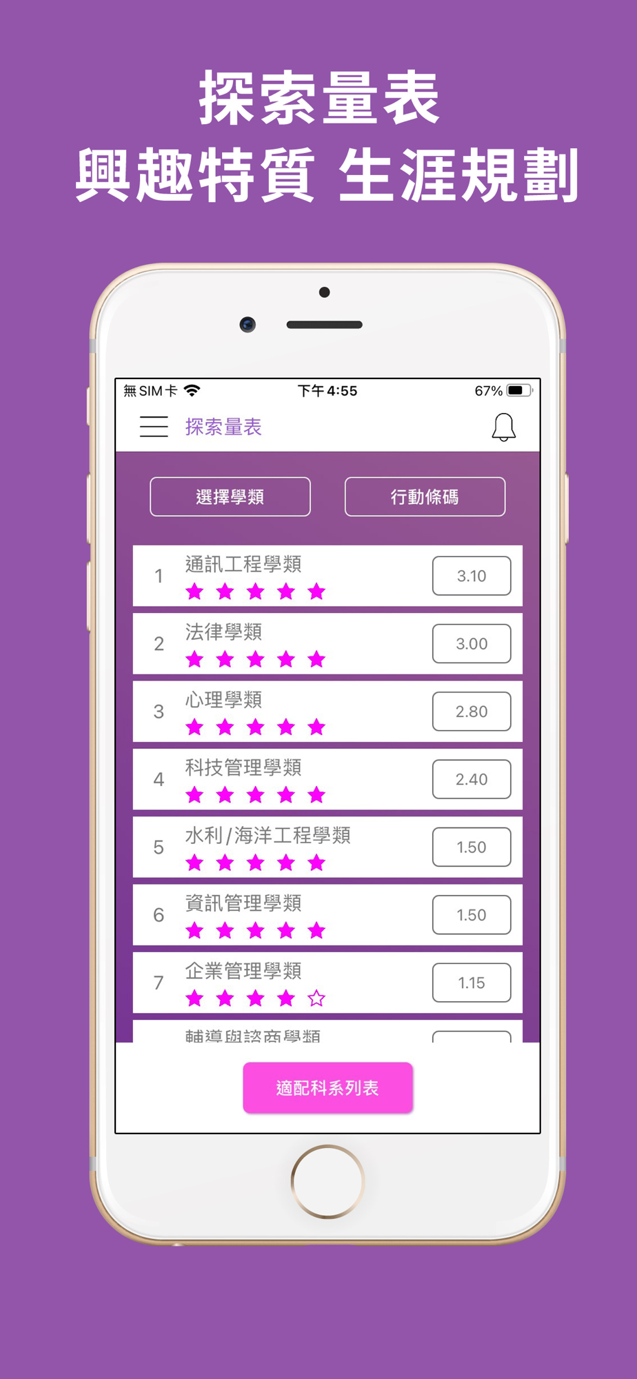 囊括學測個人申請、繁星推薦、統測、分科測驗在同一支 App