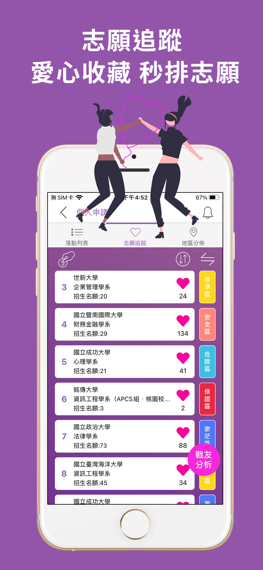 - 將空心愛心變成實心就能將該系加入志願追蹤