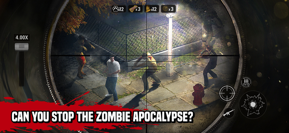 The Zombie Apocalypse has just begun! A death pandemic is spreading, and people are starting to mutate into some kind of walking dead. Help survivors by killing the zombie outbreak and stop the end of the world. Travel to wasteland, take your rifle and try your sniper skills shooting the unkilled! You will need strategy and precision to stop the assault in this zombie action shooter game. Keep your finger on the trigger, survive and shoot to every living dead!