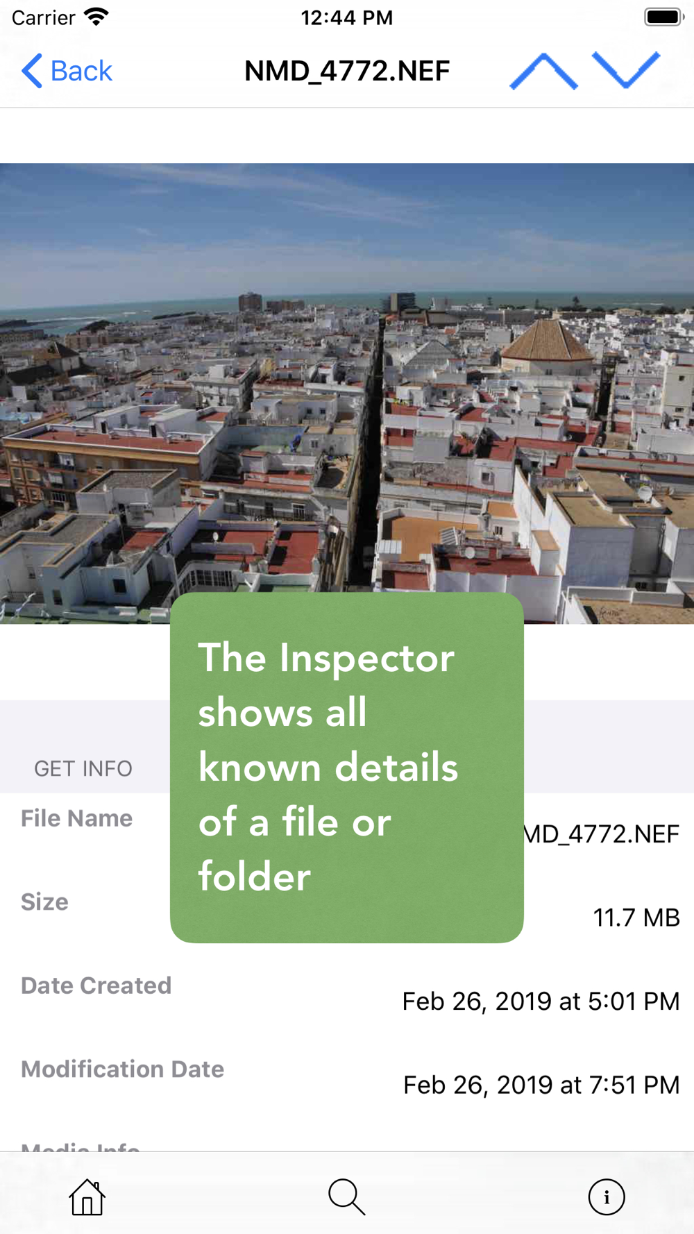 Find your photos, movies, songs, and any cataloged data quickly on your iPhone or iPad, wherever you go