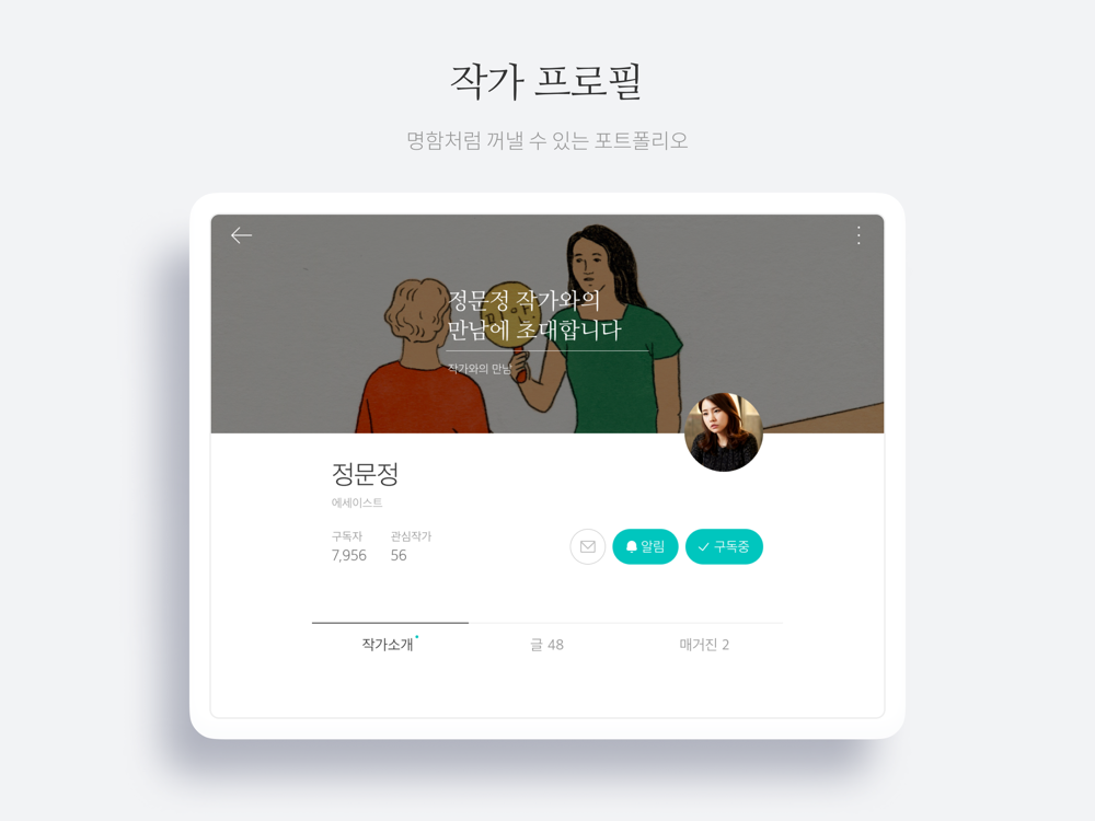 - 마음을 사로잡은 작품과 작가를 구독하면 한곳에 모아 보실 수 있습니다.