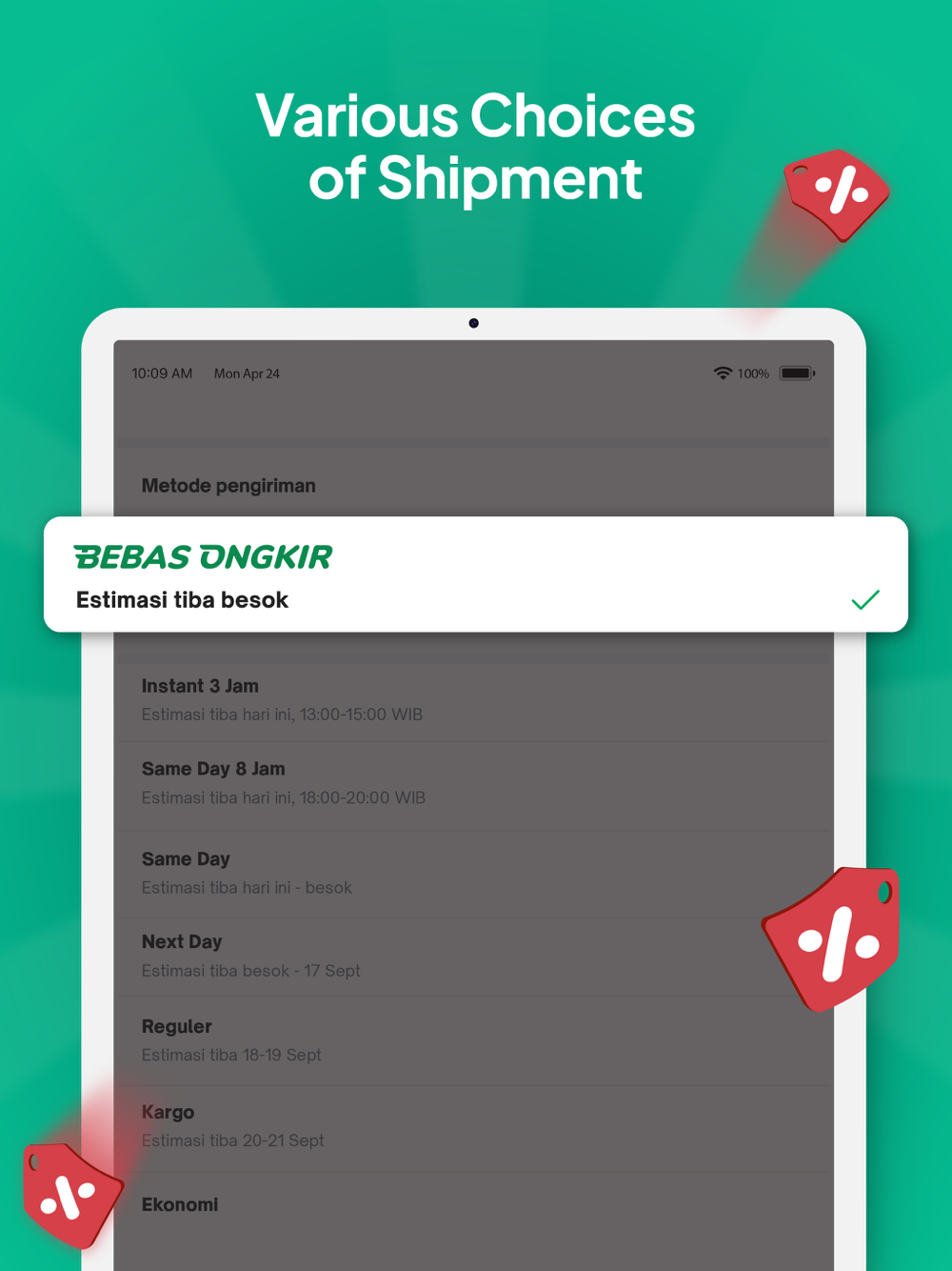 You have a trusted courier of your own choice? Or prefer same day delivery? In Tokopedia you can choose your own courier based on your needs, we also have instant & same day delivery as well!