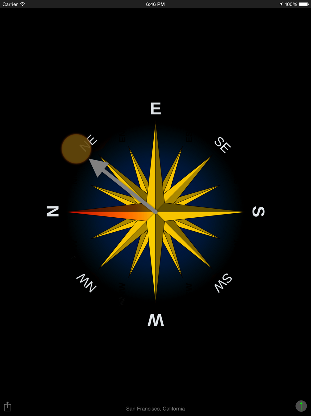 Use the old boy scout method and turn your iPhone, iPad or Apple Watch into a sun compass. Just point the sun symbol to the sun and the compass rose points north. You can add a target angle to easily follow the direction you want.