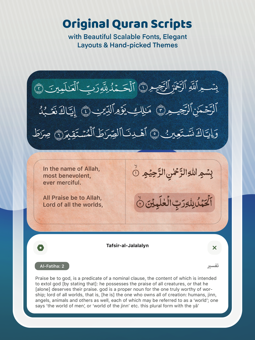 - 60+ most authentic Quran Tafseers from renowned scholars in English, Arabic & Urdu languages.