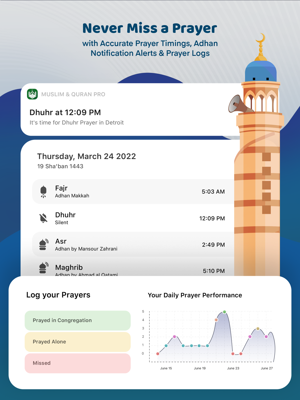 - Accurate Prayer Timings calculated for your exact geographical location.