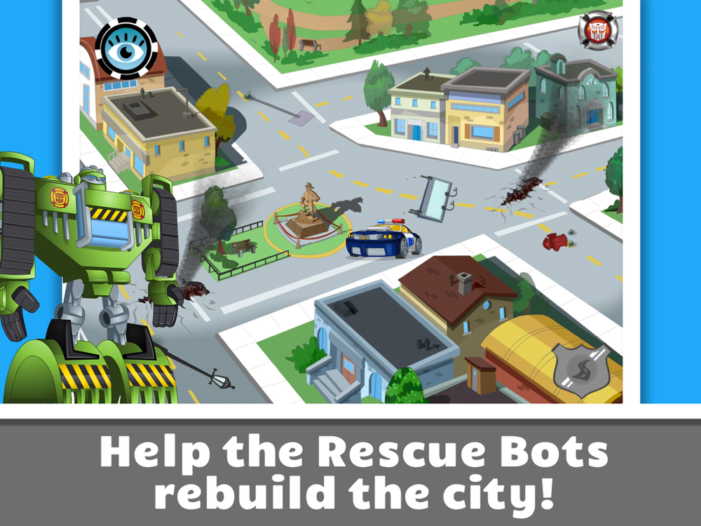 • A brand-new TRANSFORMERS RESCUE BOTS preschool learning app based on an original story