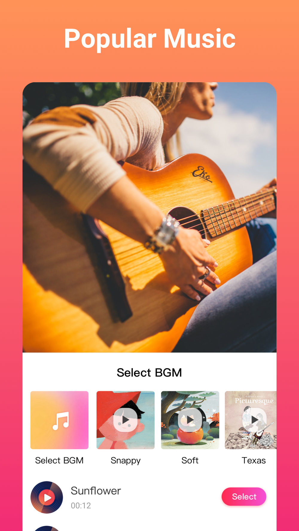 SlidePlus slide show video maker is packed with varieties of background music, so you can always find the one that fits your need while making slideshow videos. You can also add your favorite music from your phone.