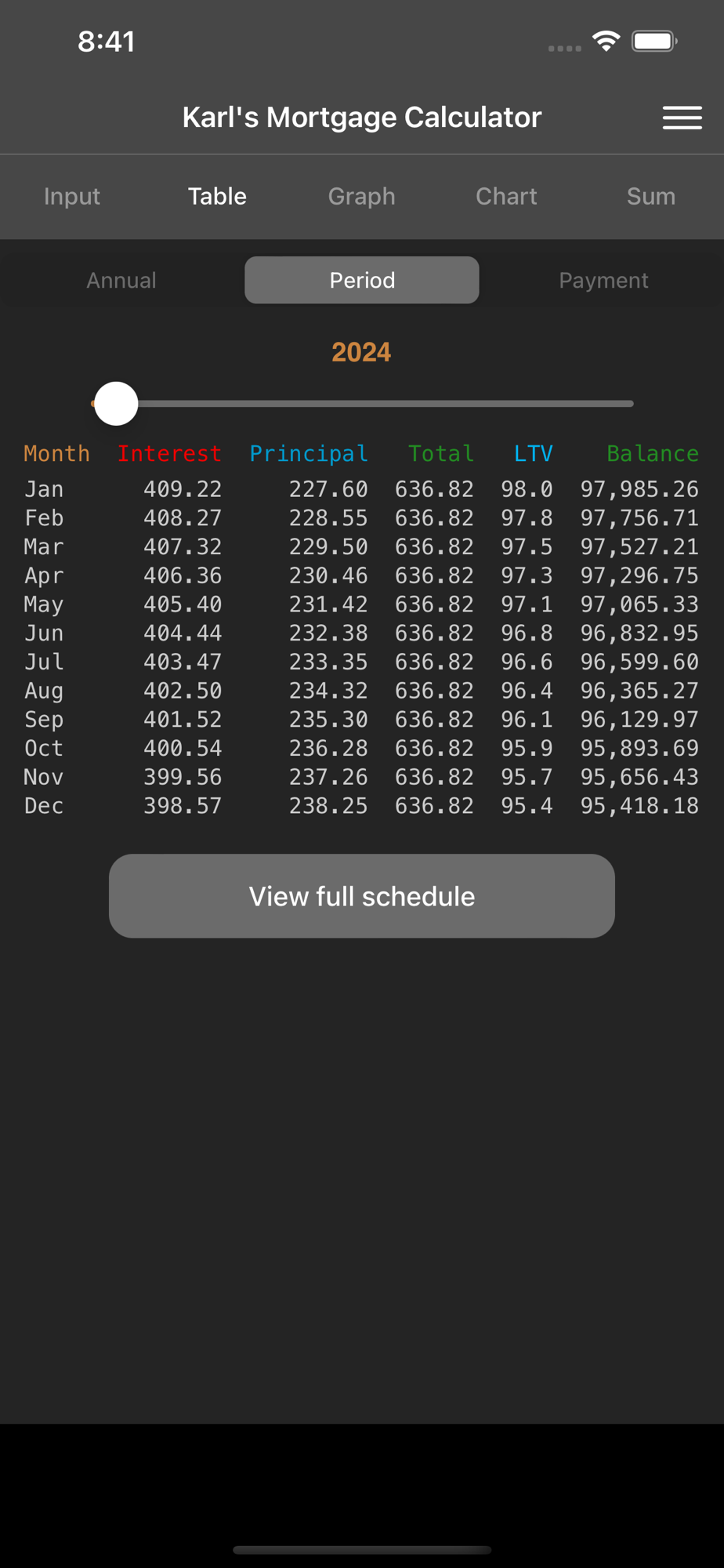 Multiple rounding options on loan calculations are also available. Choose between no rounding, round half up, half down, to even, to ceiling and to floor.