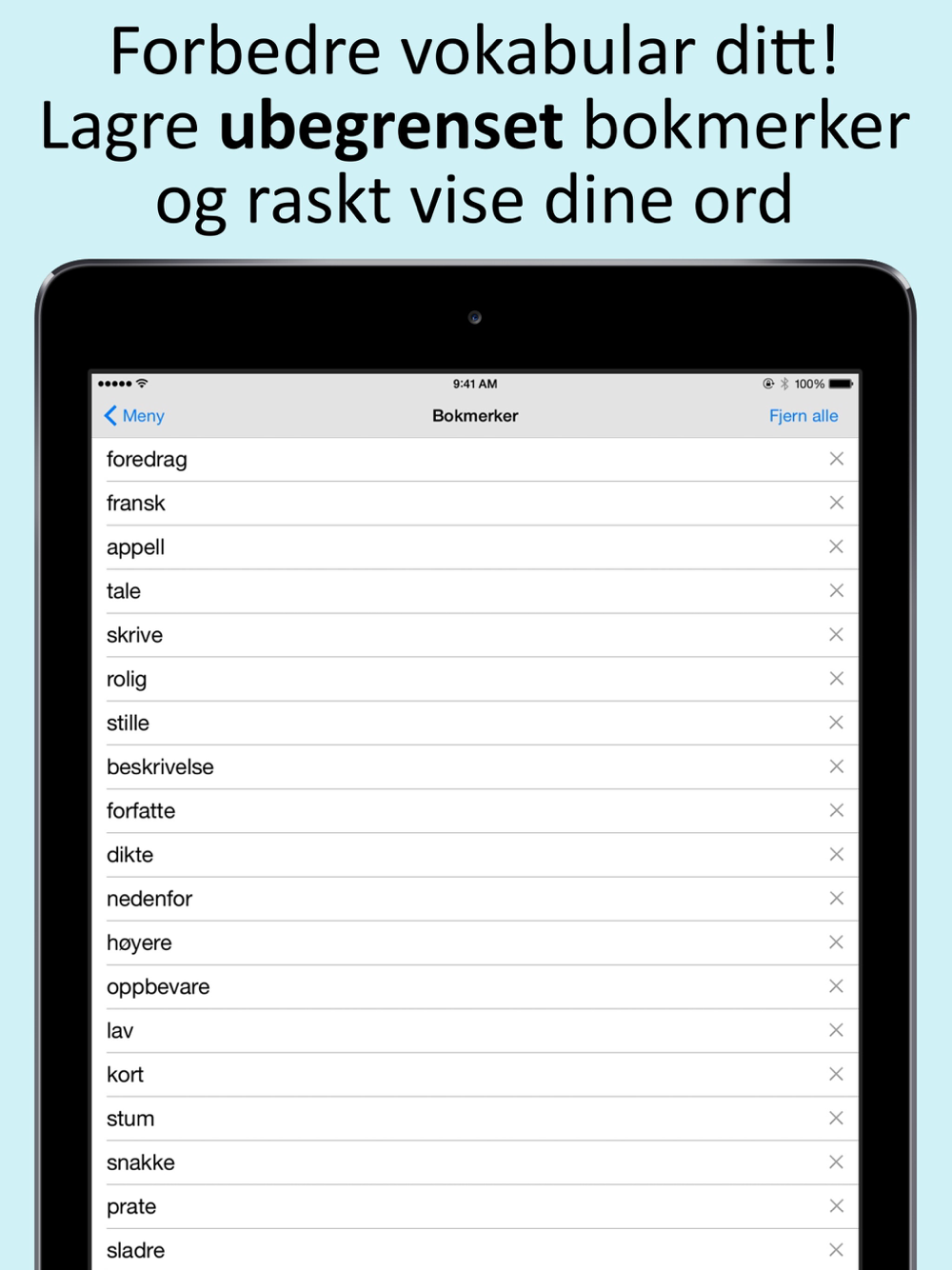 Gratis norsk ordbok og synonym pluss en offline norsk ordbok. Spille av lyd uttale av ord, lagre ubegrenset bokmerker, og bruke avanserte søk.