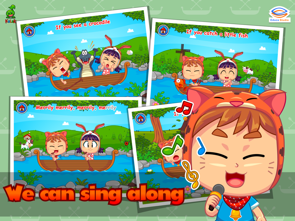 Row Your Boat.. Row Your Boat have you ever heard this song when you were kid? Want to sing it again with your kid? If so, let's sing and together. Row Row Your Boat is now available with interactive and cool animation. You can sing along and learn together with your kids. Moreover, you will get 6 mini games for your kids to learn, stimulus their memory and motoric skills. Let's teach your kids with new abilities in a fun way.