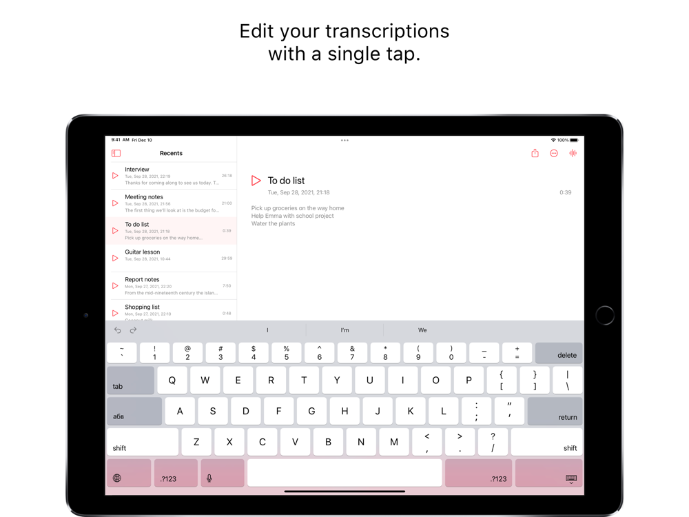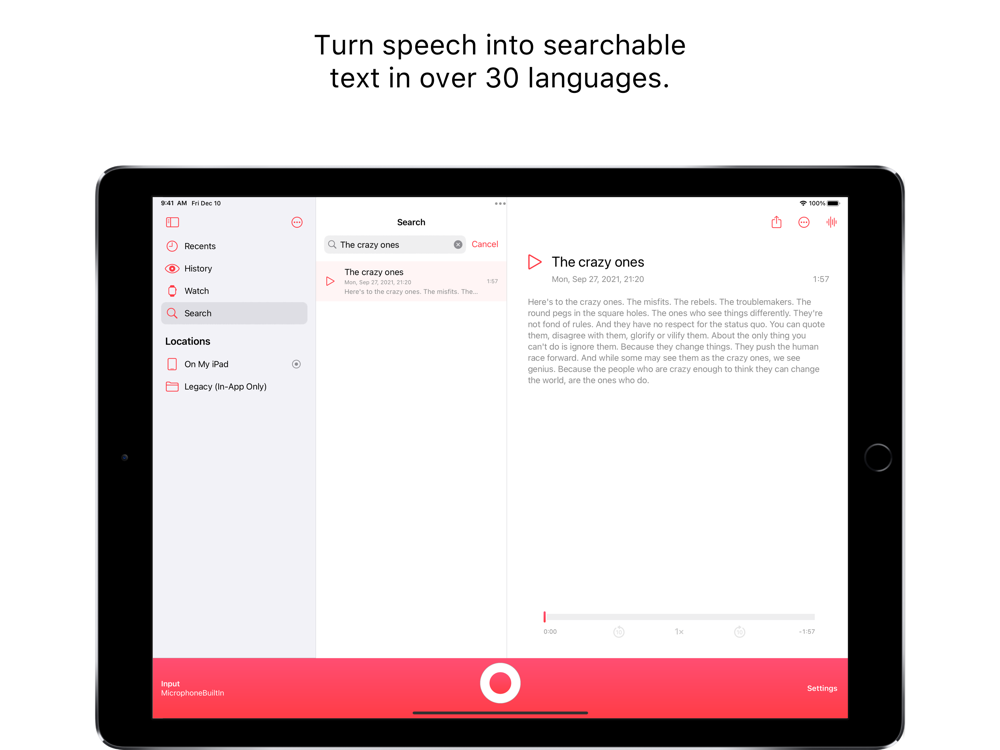 Just Press Record is the ultimate audio recorder bringing one tap recording, transcription and iCloud syncing to all your devices. You can edit your audio and transcriptions right inside the app and even start a new recording completely hands-free with Siri!