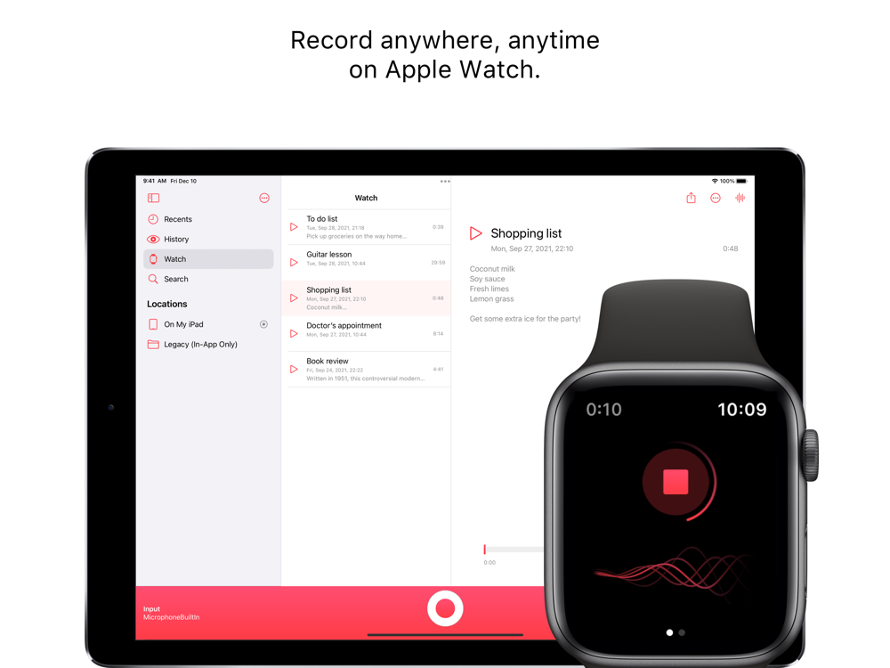 Life is full of moments we would rather not forget - like your child’s first words, an important meeting or spontaneous idea. Capture these moments effortlessly on iPhone, iPad, Mac or for ultimate convenience, Apple Watch.