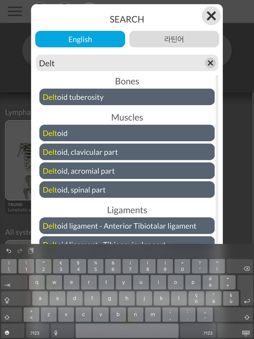 • The anatomical terms and the user interface are available in 11 languages: Latin, English, French, German, Italian, Portuguese, Russian, Spanish, Chinese, Japanese and Korean