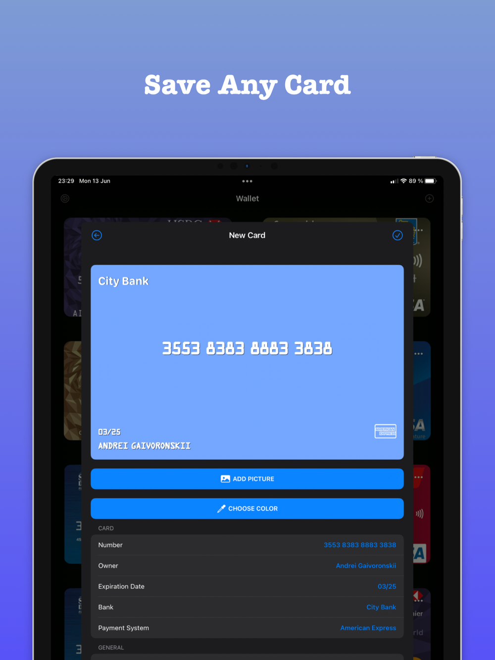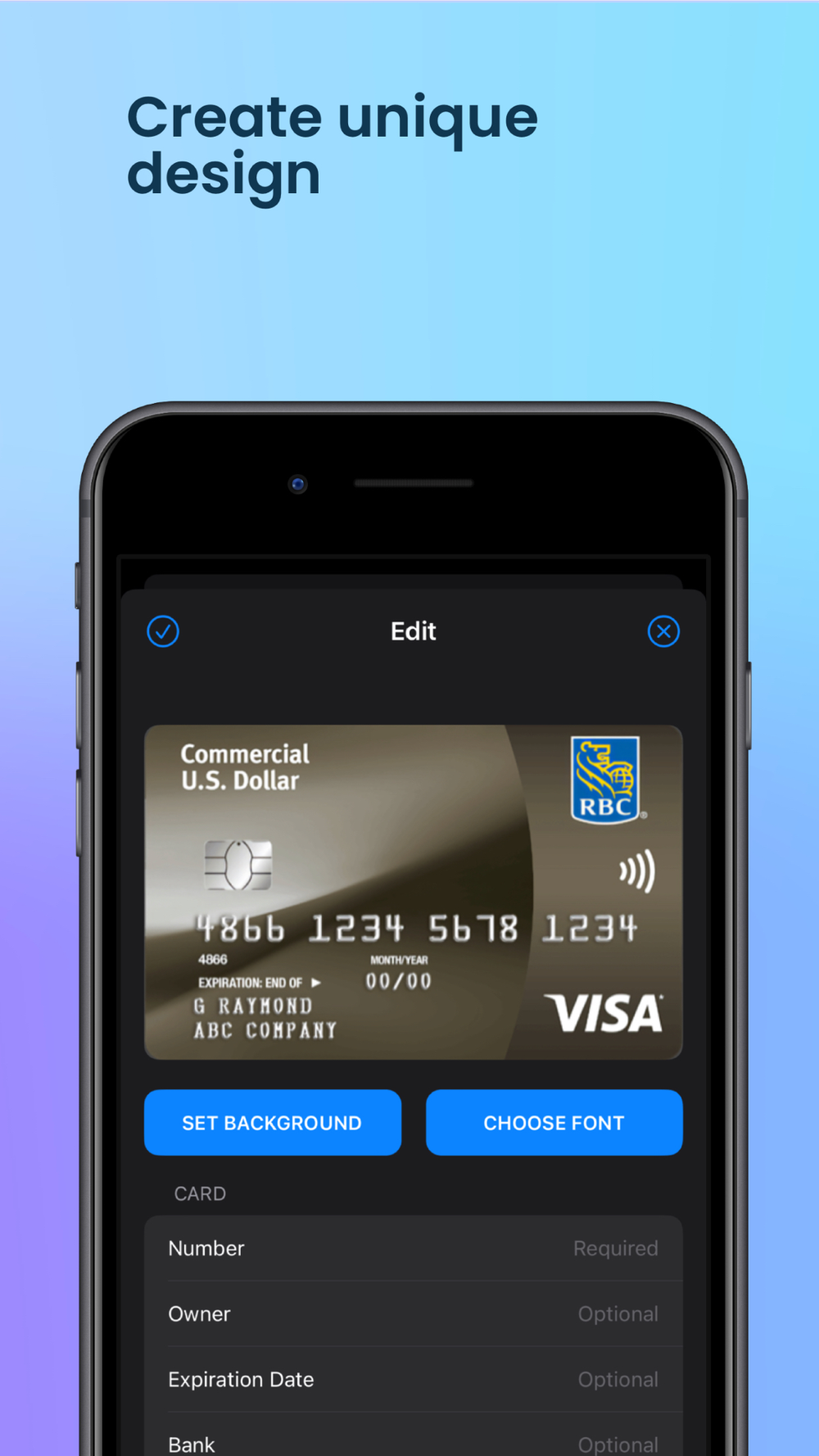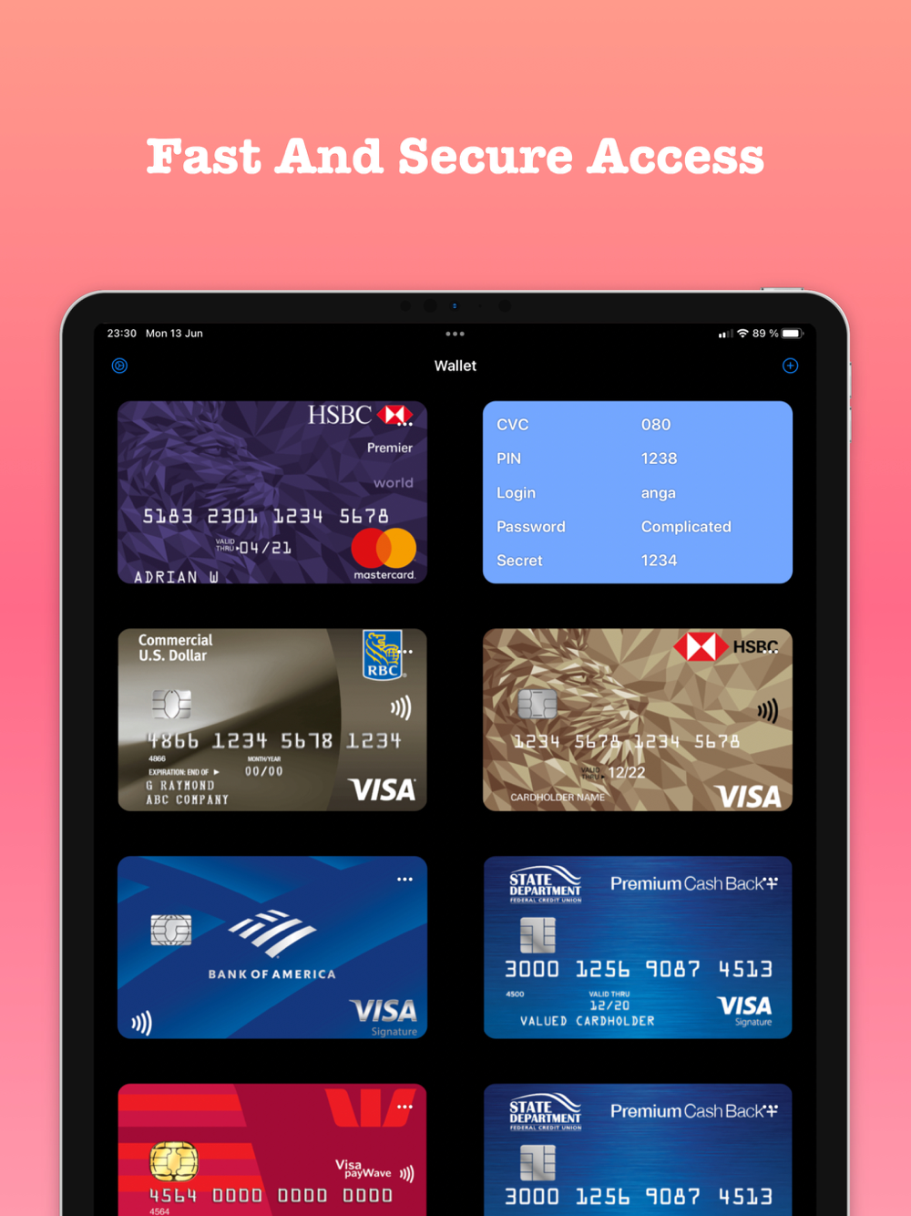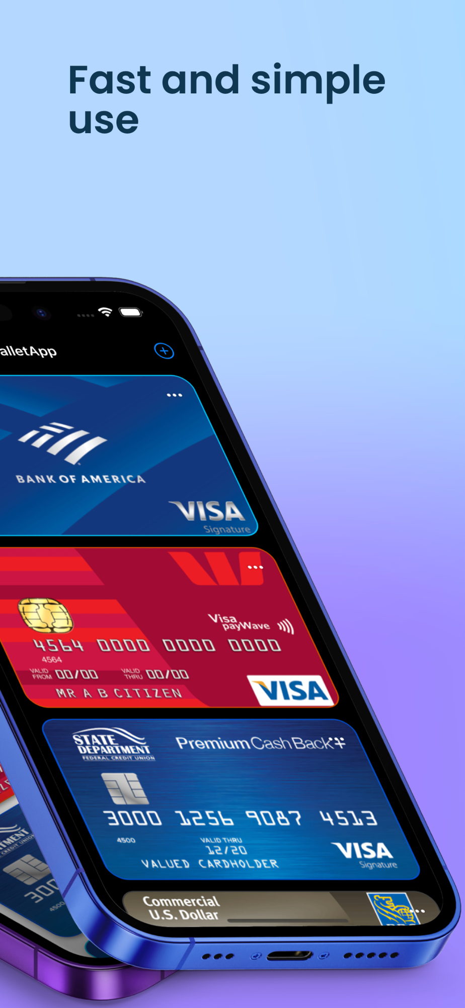 Keep your credit cards in the Wallet app. Get access to your credit card's data anytime, anywhere.