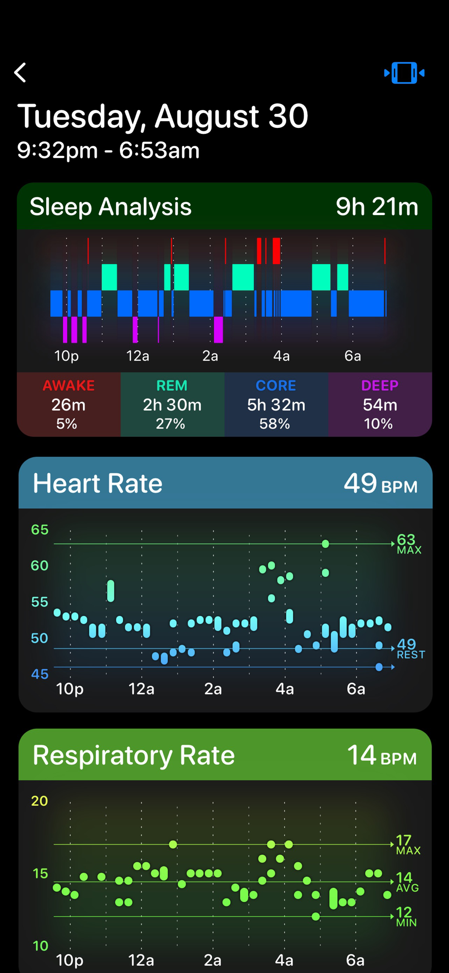 My goal is to provide every Apple Watch owner with a free automatic sleep tracker that is simple and clear to understand. For each night you get a straightforward report of how long you slept and how restful you were during the night.