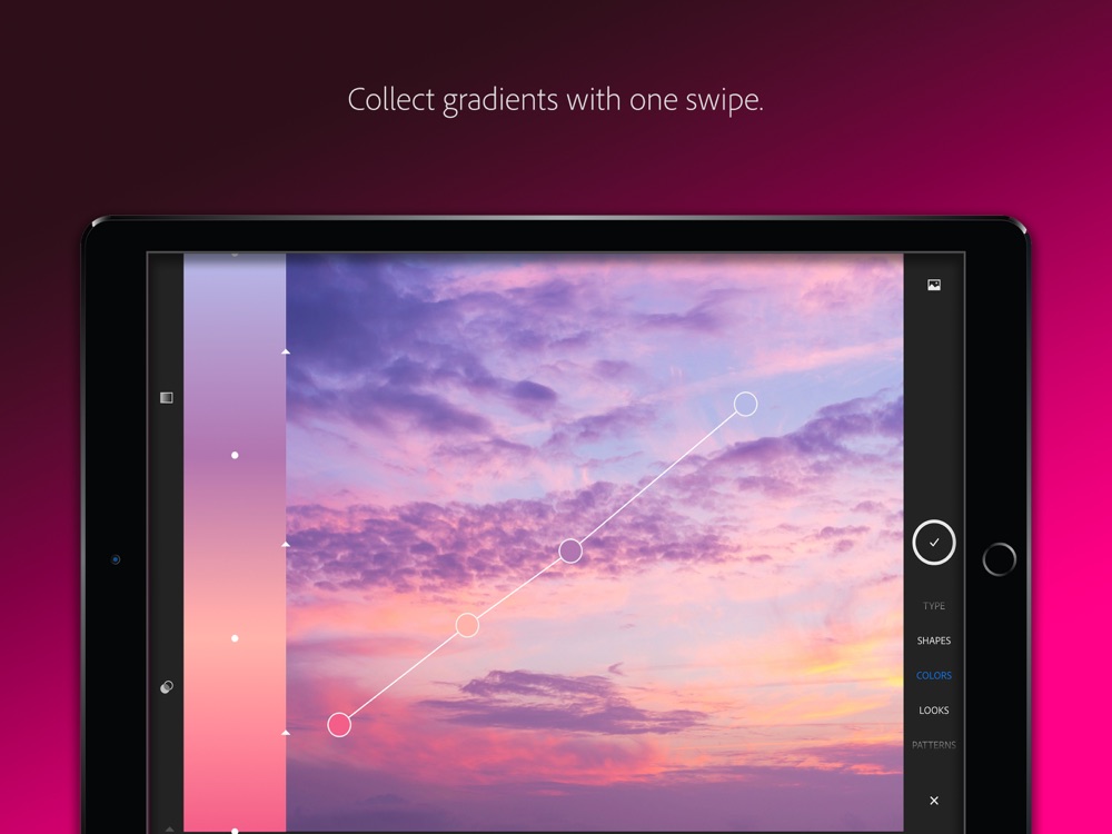 Looking for customized color palettes? Find an inspiring gradient? Find color by number or hex? Aim your camera at the scene that has the colors you want and capture them to use in your artwork.