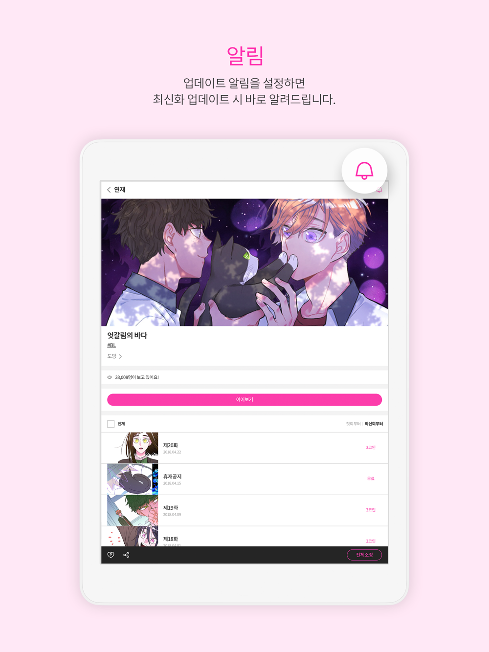 관심작품의 회차 업데이트 알림을 받아 바로 확인 할 수 있습니다.