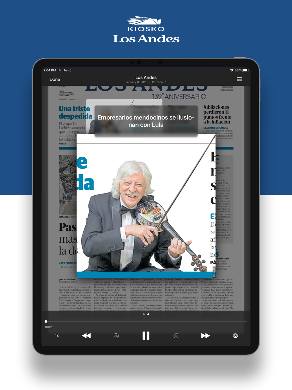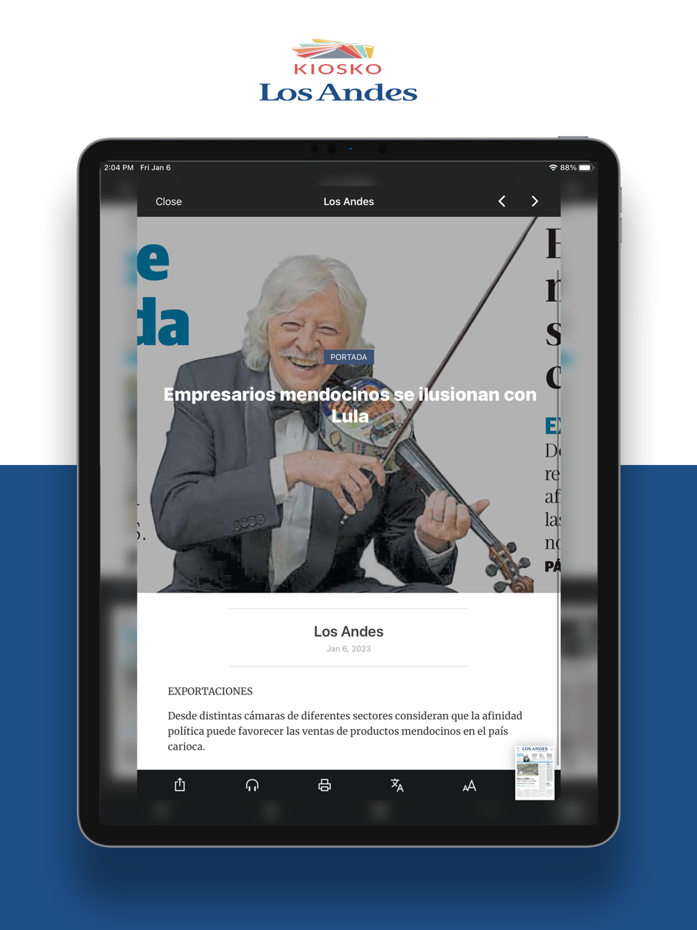 Disfruta la edición digital del periódico y títulos asociados con la publicación Los Andes. Con la edición digital, uno puede leer la edición del día, tal como aparece en papel, pero con una experiencia interactiva con herramientas adicionales como la de compartir artículos, escuchar, traducir, ver ediciones pasadas y mucho más.