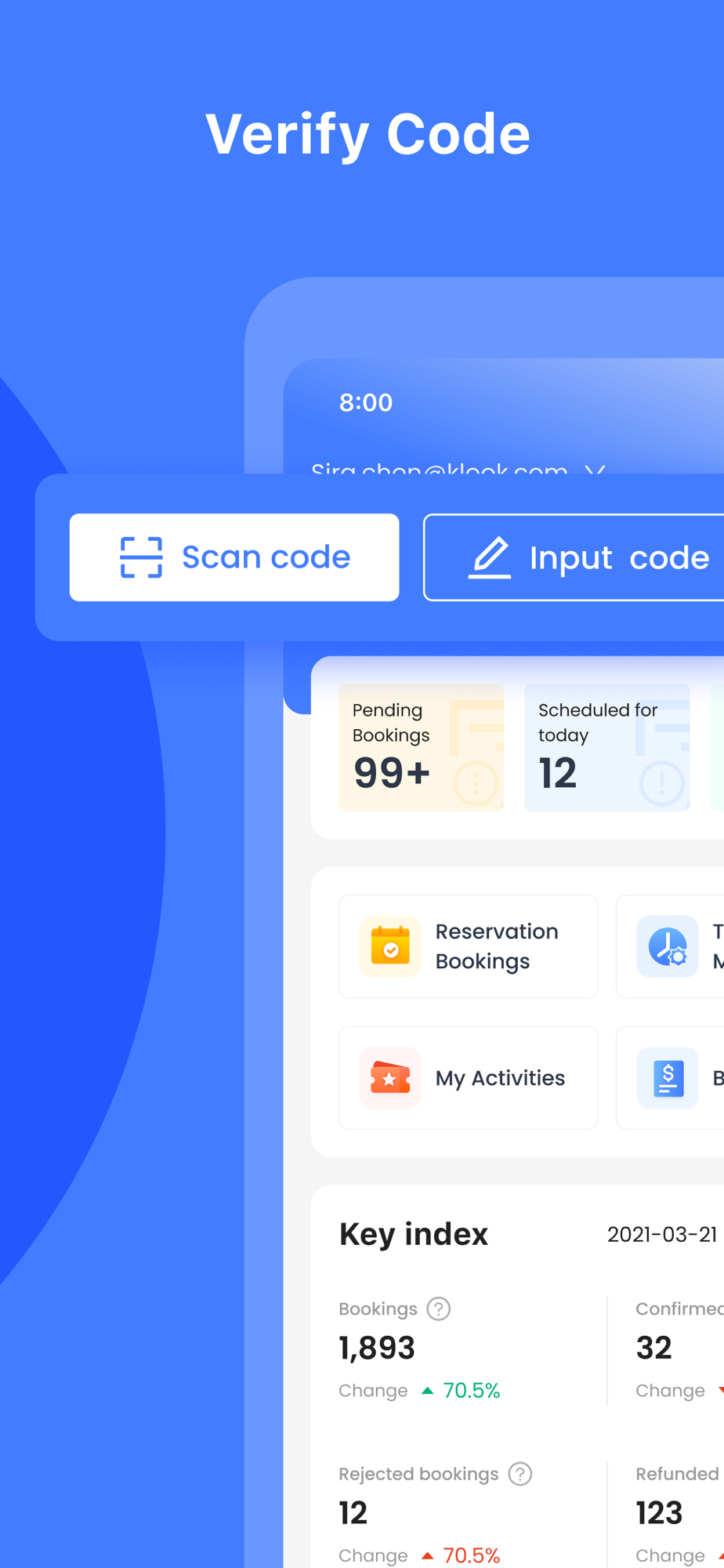 The Klook Partner App works alongside the Klook App (for travelers) to make your bookings management simple, efficient and convenient.