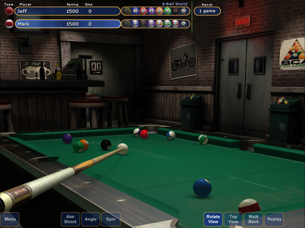 Play 8-Ball, 9-Ball, Snooker, Billiards, Pub Pool, 27 games total, in 3D!