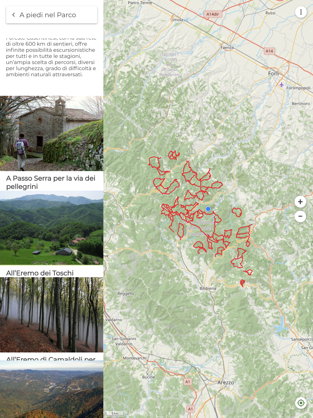 Una app dedicata agli appassionati di escursionismo e in generale a tutti coloro che vogliono vivere a pieno la natura del Parco Nazionale delle Foreste Casentinesi, Monte Falterona e Campigna e fruire di una rete sentieristica di oltre 600 km di percorsi segnati nell'Area protetta.