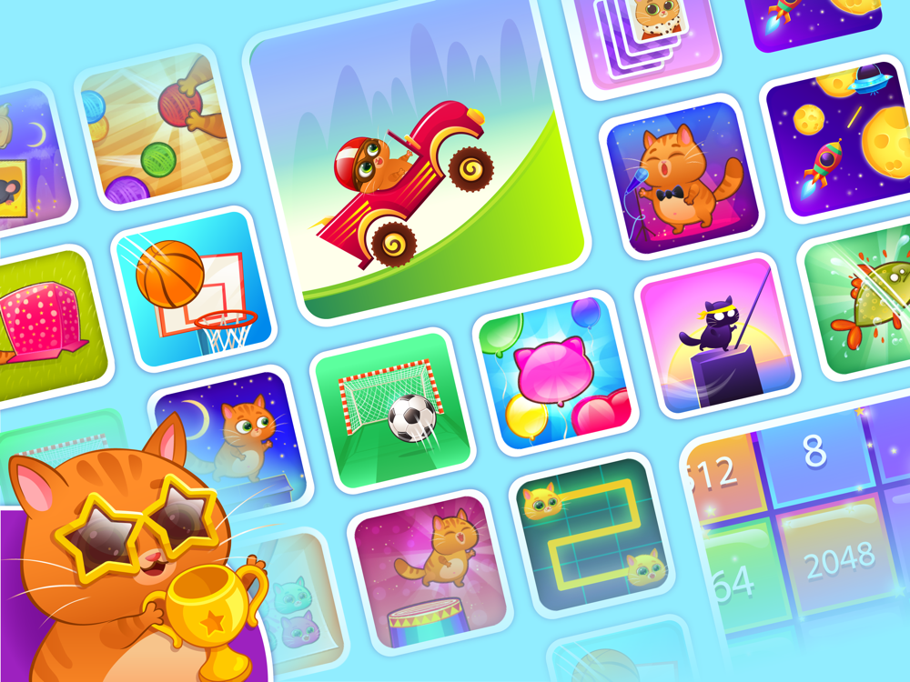 • Over 30 fun mini-games will provide you with food or with coins to buy items for your virtual cat. Have fun playing Catcher, Cat Connect, Find the Cat, 2048, Paint the Cat, Jump, Pop Balloons, Cheese Builder, Fish Ninja, Cat Sings, Nightmare, Jumping Cat, Diver, Stick Ninja, etc.