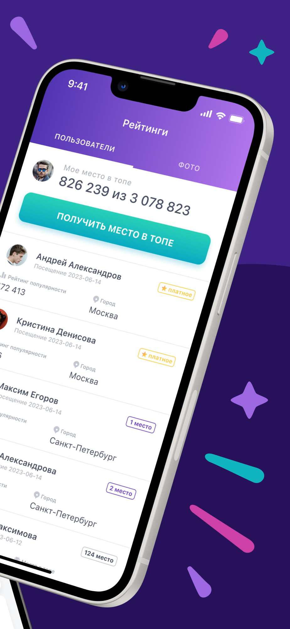 ◉ Рейтинг пользователей приложения и возможность попасть на первое место в рейтинге.