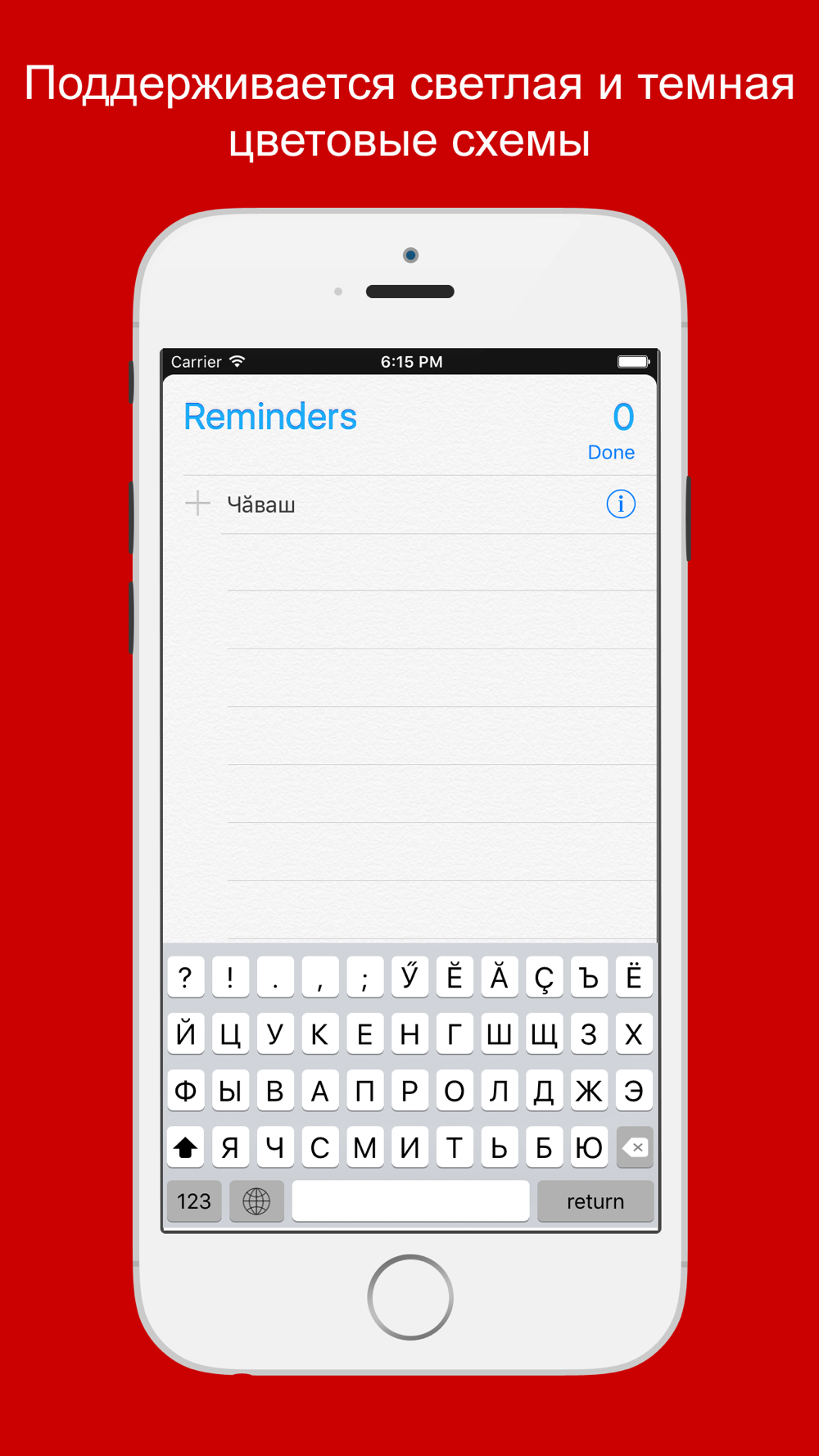 Чувашская клавиатура. Интегрируется в систему и работает во всех приложениях. Поддерживается светлая и темная цветовые схемы.