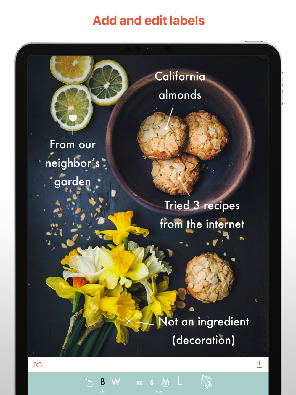 Tell the whole story by adding pointers, labels, descriptions, and commentary to your photos.