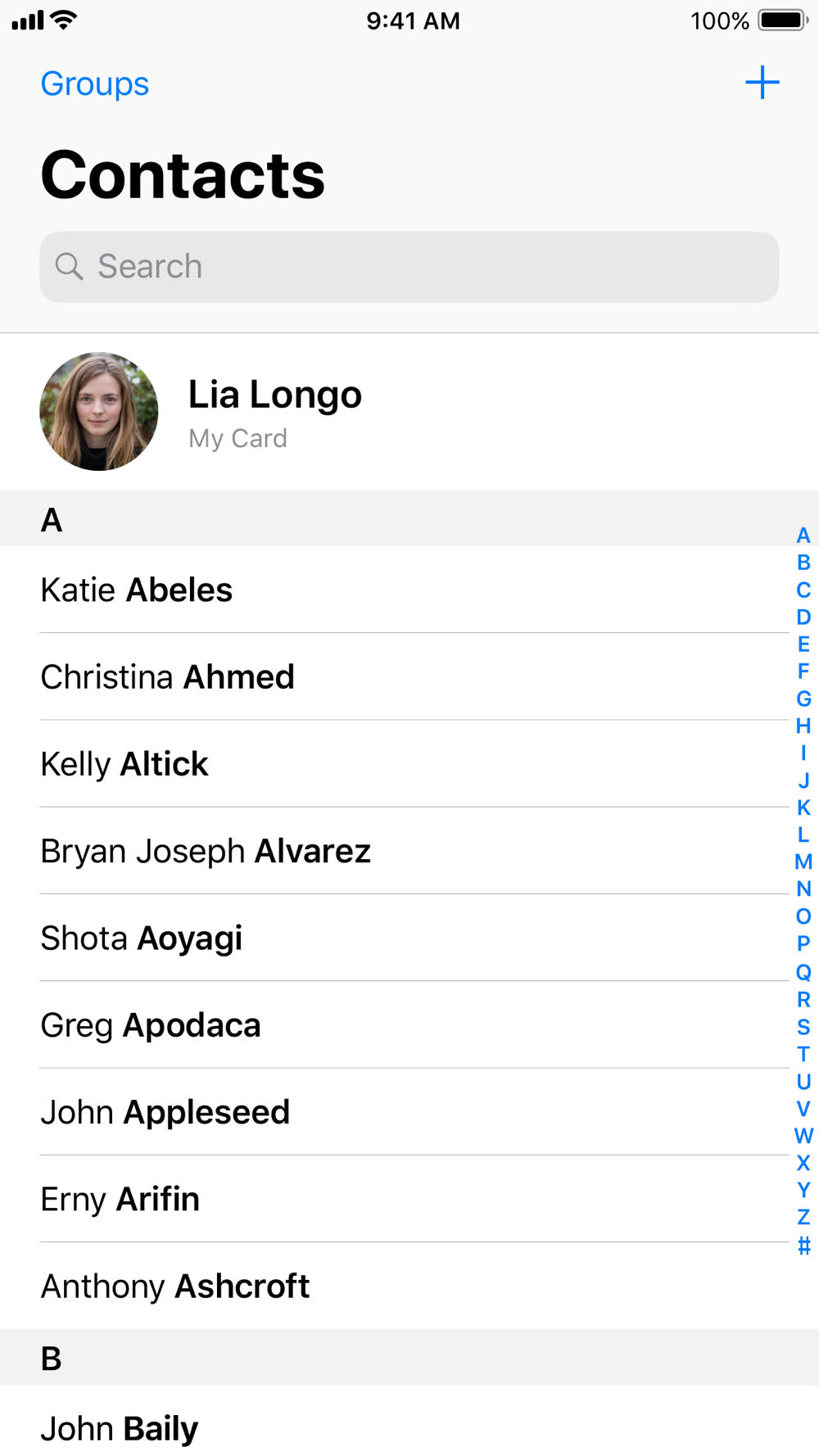 With Contacts on iOS, iPadOS and macOS, you can store and manage your and other’s contact information, birthdays, Contact Posters and more. Easily connect with your contacts with Mail, Messages, Phone or FaceTime. Or instantly share your Contact Poster and your number or email address with someone new through NameDrop on iPhone and Apple Watch.