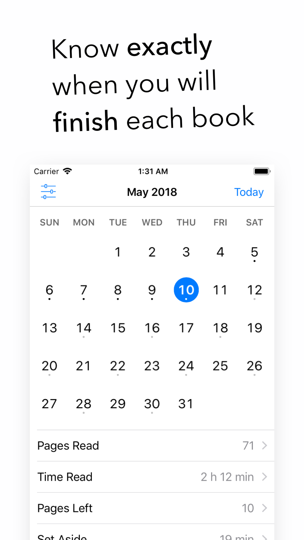 Tell Leio how often you want to read each book and use the planner section to stay on track. See how much you have read on each day, how much you still have to read, and how much time to set aside to accomplish your goals!