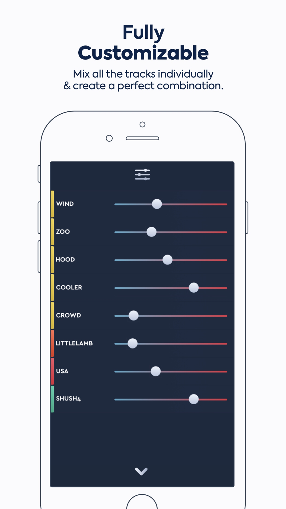 • Adjust the volume of each sound individually to find the perfect mix.
