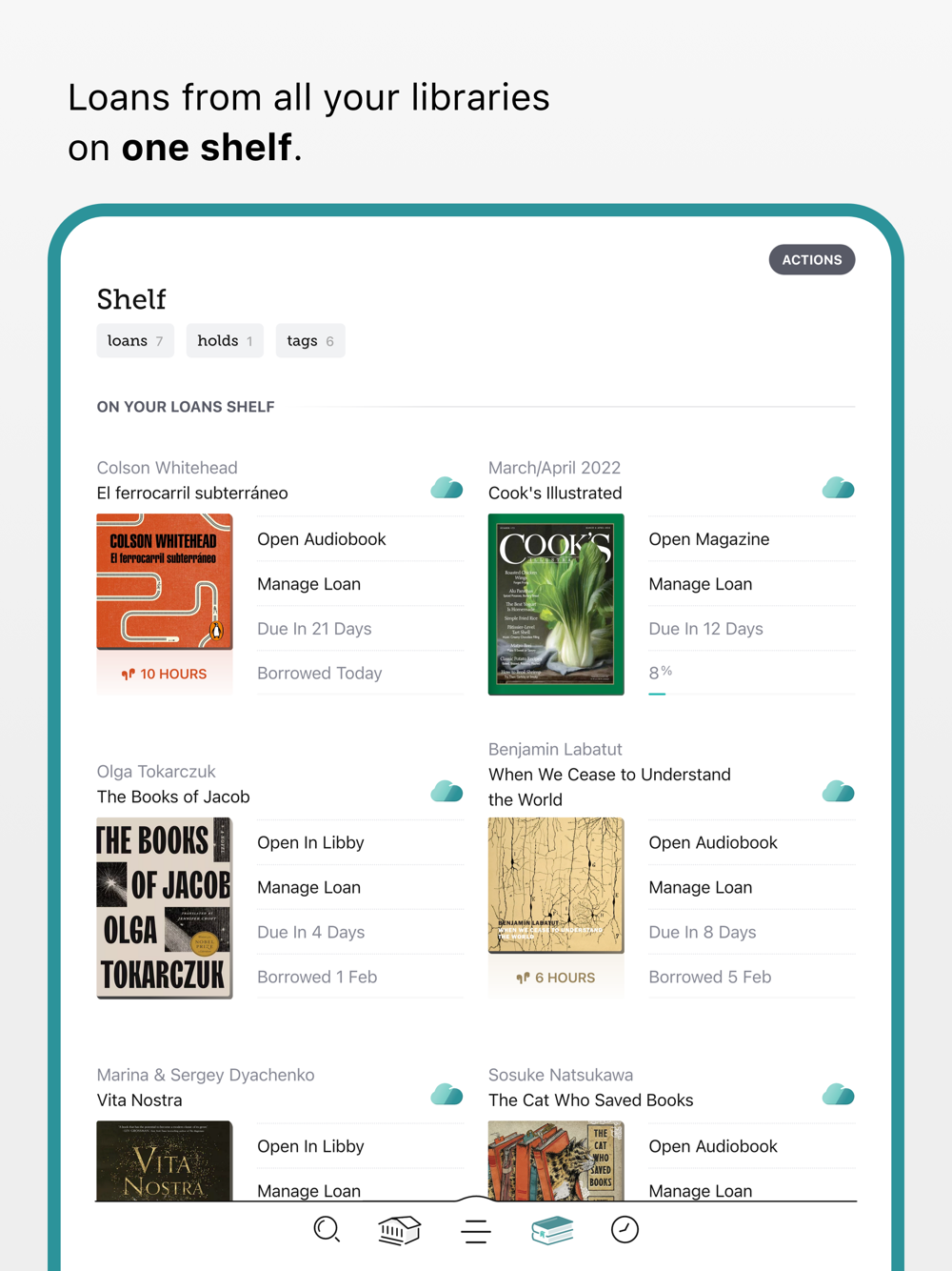 • Borrow and enjoy ebooks, audiobooks, and magazines