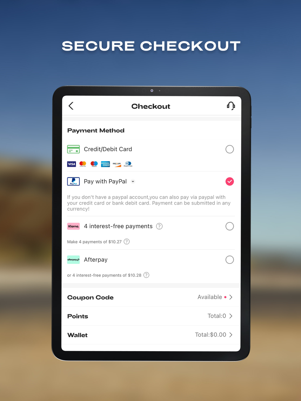 - Multiple secure payment methods, such as PayPal and several credit card carriers
