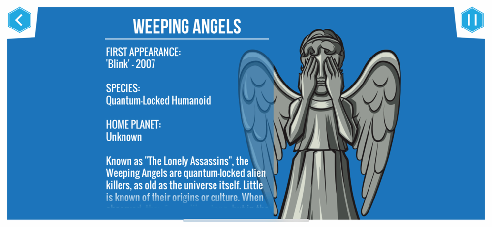 Want to pit the First Doctor against the Judoons in Manhattan? Or recreate the Tenth Doctor's crusade against the Weeping Angels? Well now you can! Generate your own Doctor Who adventures using this intuitive interface. Select the optimal page layout, pick a panel to design, choose a striking background and then fill the scene with characters, Monsters, speech bubbles, props and sound effects. Comic Maker features edit tools that allow you to position, re-size, flip, rotate and duplicate the characters and objects until you’ve created the perfect snapshot of Doctor Who in action. Once you’ve finished your comic you can watch your adventure unfold using the app's Comic Reader or save it to your camera roll where you can send it to a friend.