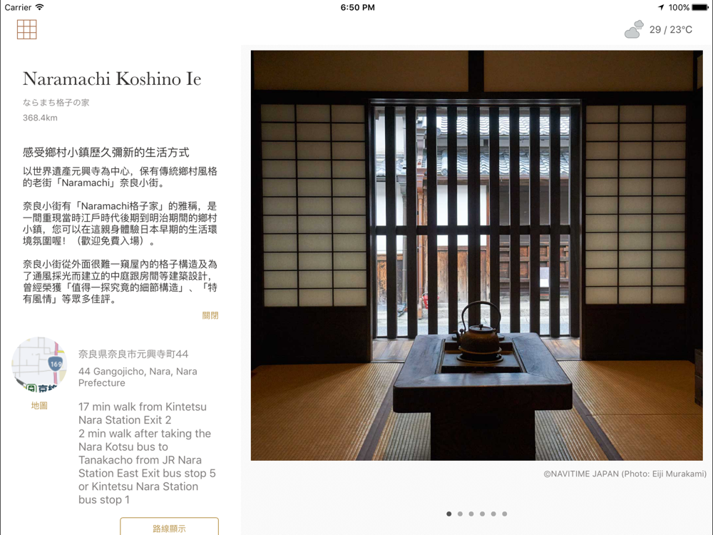 透過奈良體驗讓您的旅程收獲良多 ---- 您專屬的城市景點、體驗、美食和藝術響導。以便利的 GPS 路線地圖、獨特地點和奈良最棒的傳統及現代工藝完整指南,為您提升在日本古都度過的時光。