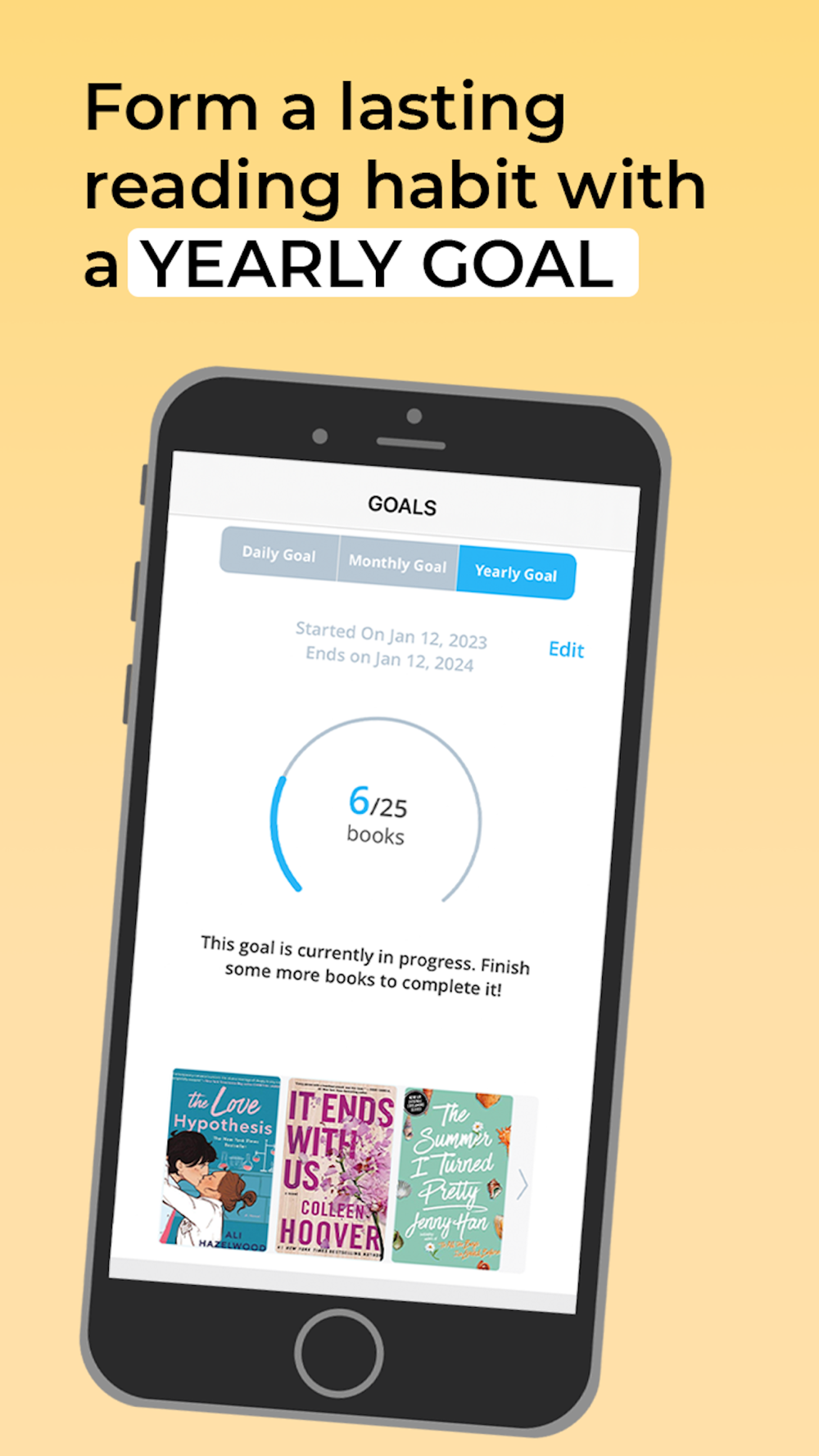 - Set a Book Goal to finish your book by a given time