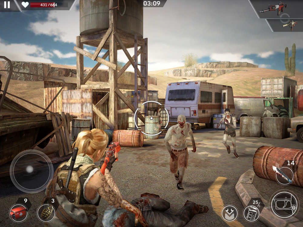 Danger lurks everywhere. Survive against zombies using rifles, grenades, shotguns, and anything in your arsenal to secure safe havens and save survivors. Build your encampment to defend yourself against enemy attacks. Get to the chopper and lay waste on enemy bases to steal their resources. Battle other players in solo and team multiplayer tournaments. Band together with other human factions.