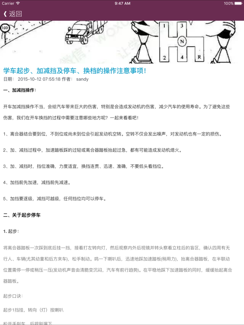 我们图文并茂,深入浅出、通俗易懂,集知识性、指导性、趣味性、实用性于一体,分析学车动态,重点讲解理论学习、倒桩移库、 路考路训、考试技巧,以及新手驾驶技巧、驾驶要领、以及日常安全驾驶常识等内容,是汽车驾驶学员新手不可多得的参谋和助手。