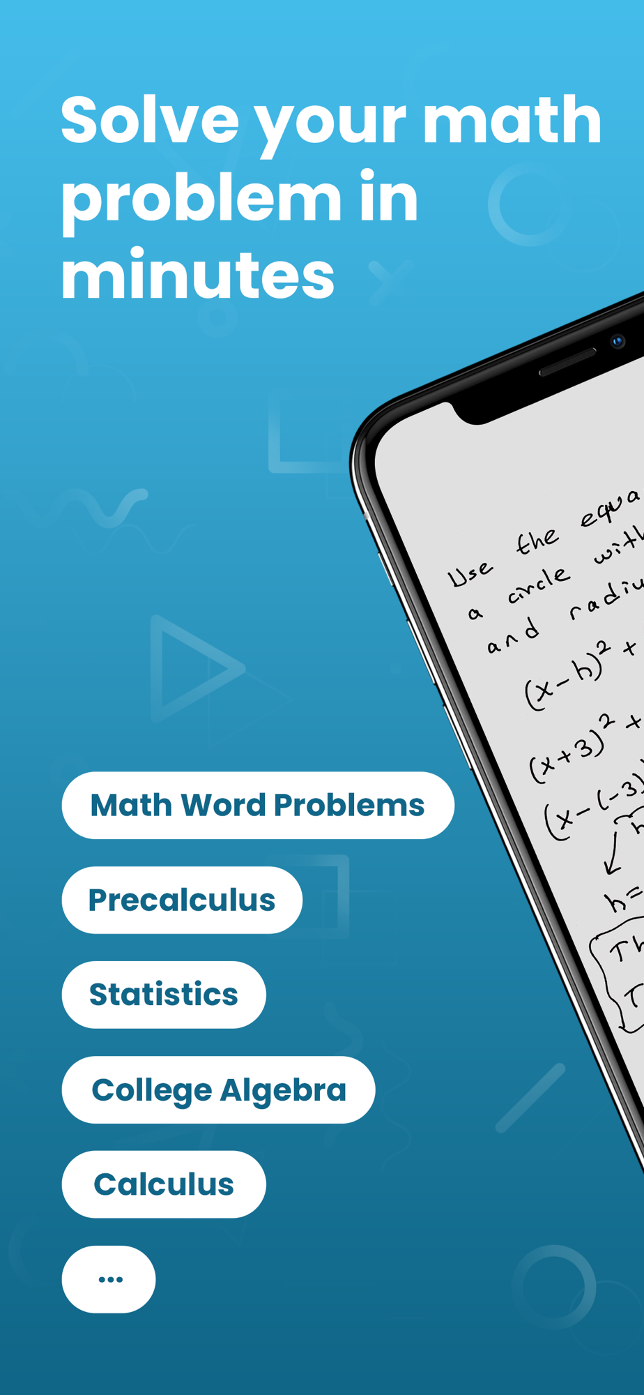 1. Snap a picture of your College Algebra, Geometry, Trigonometry, Calculus, Statistics, Precalculus or any math problem for that matter. Our tutors will help solve any college math problems.