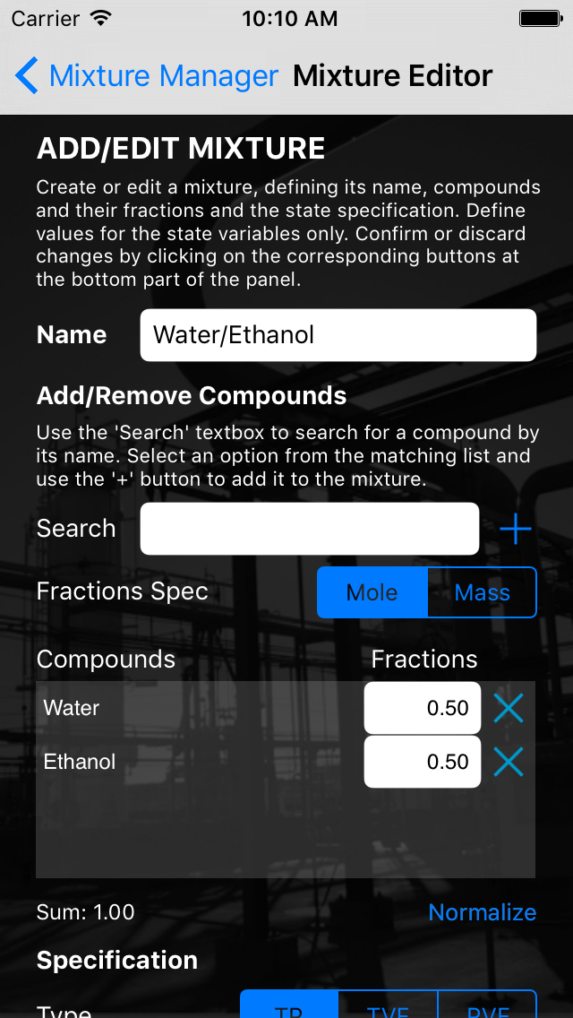DWSIM Calculator is an app to calculate phase equilibria and properties of mixtures of substances (compounds) using advanced thermodynamic models. Based on the model library of DWSIM, an award-winning open-source process simulator for desktops, DWSIM Calculator for iOS features: