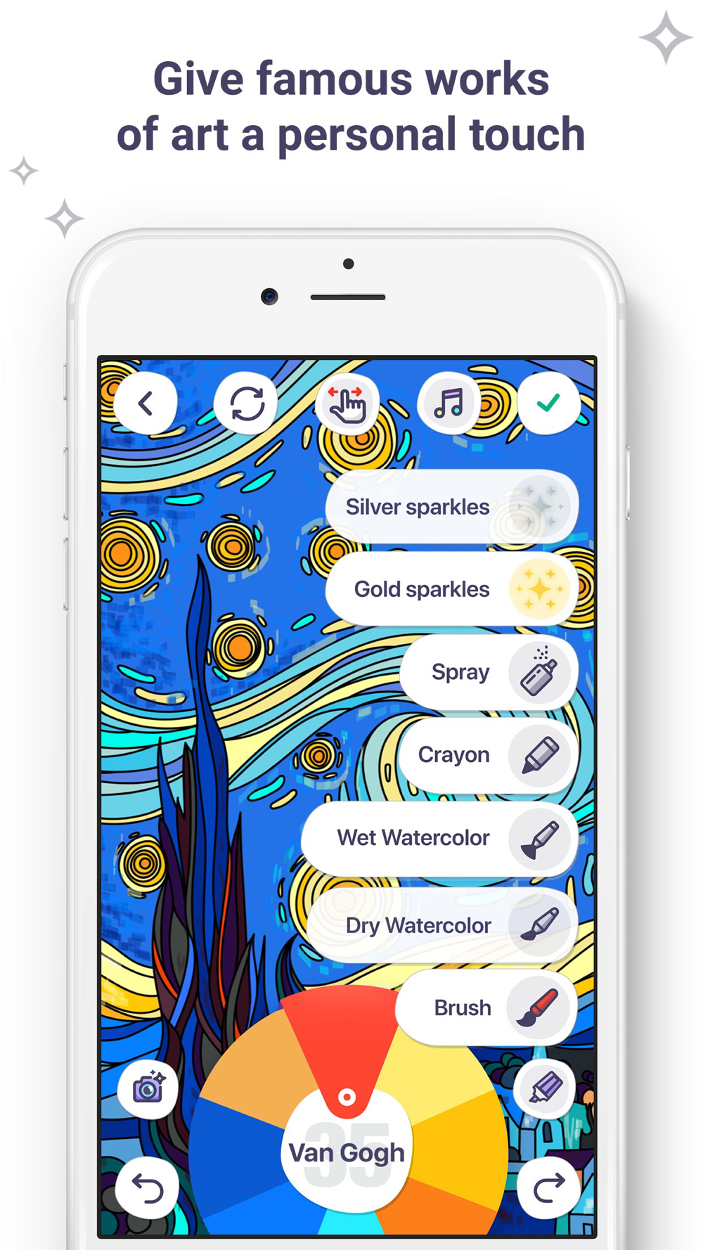 - Various coloring tools: color in a simple way with the tap-to-color tool or have real coloring experience using markers and pencils