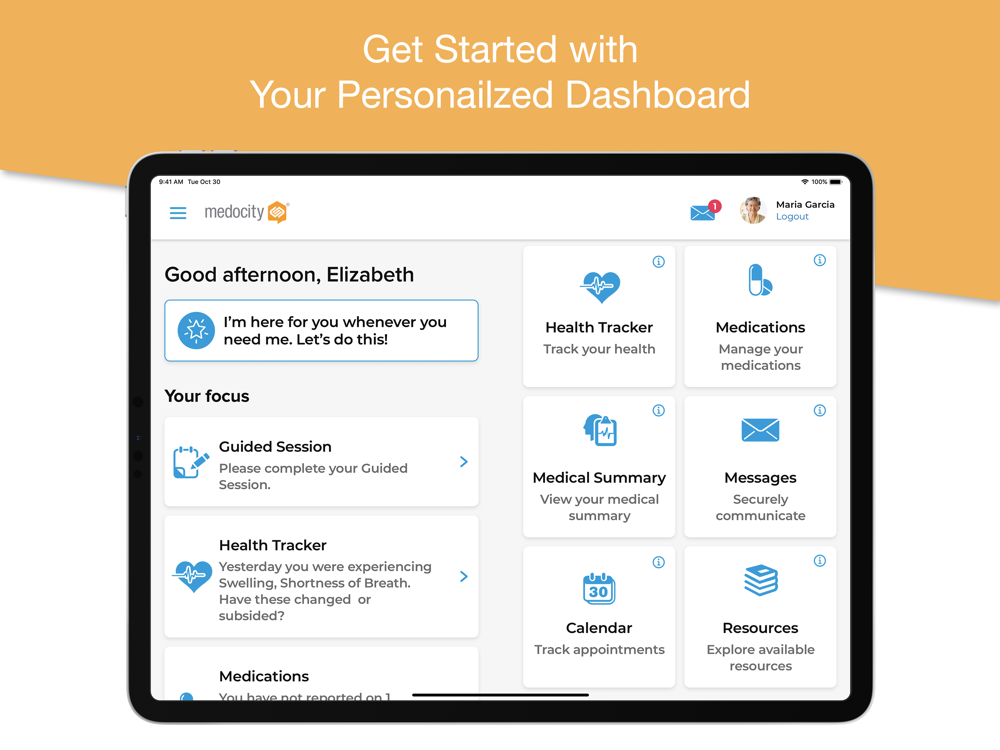 Medocity Home Health was developed for patients to virtually connect with their care professionals between visits. Patient experience is personalized for their specific needs and health condition. Patients can send secure messages, track medication and get reminders, report symptoms, access valuable educational resources and much more. And, it’s available on smart phone, tablet and PC.